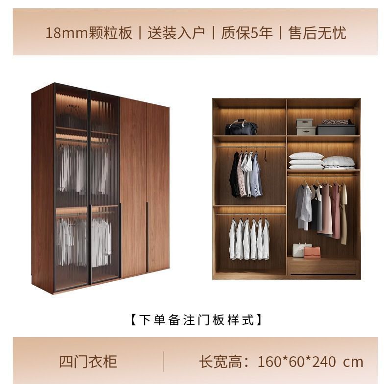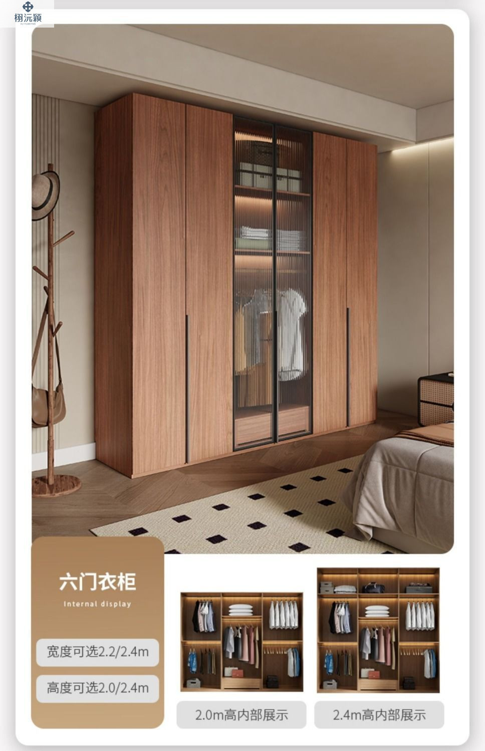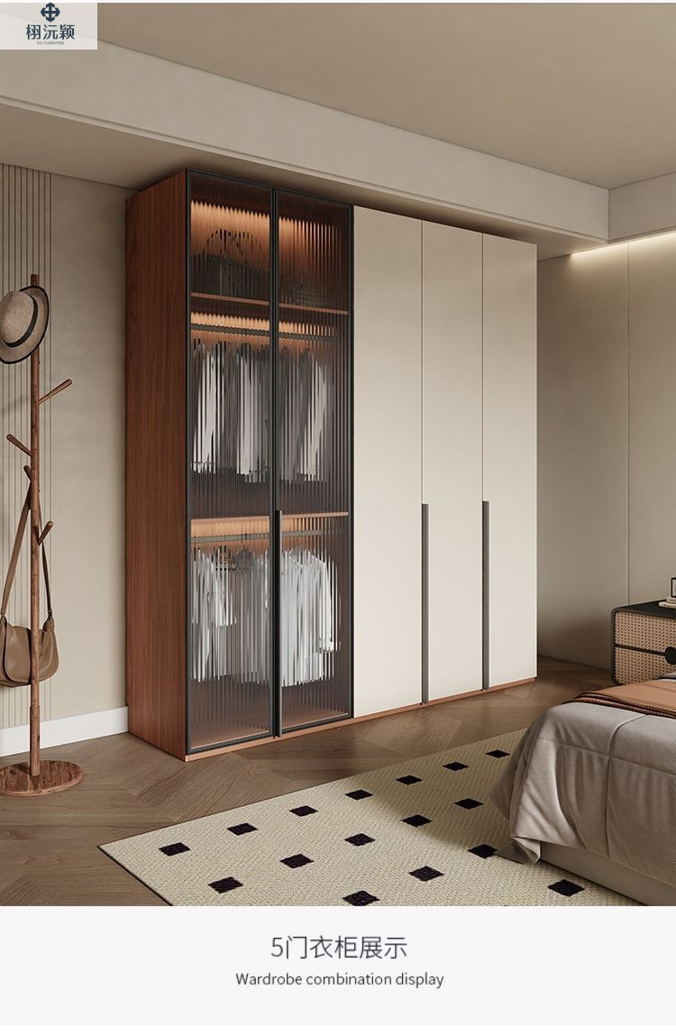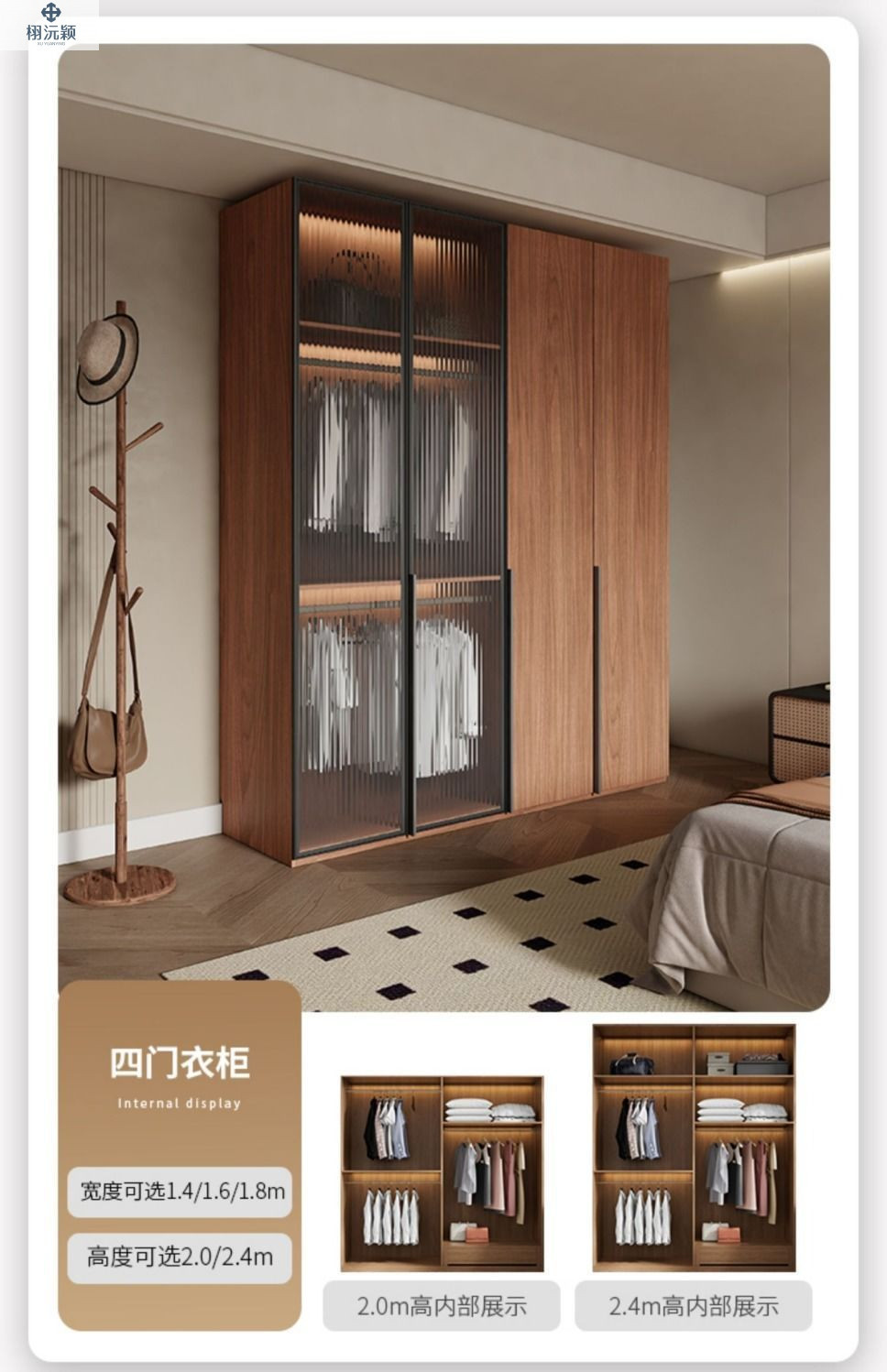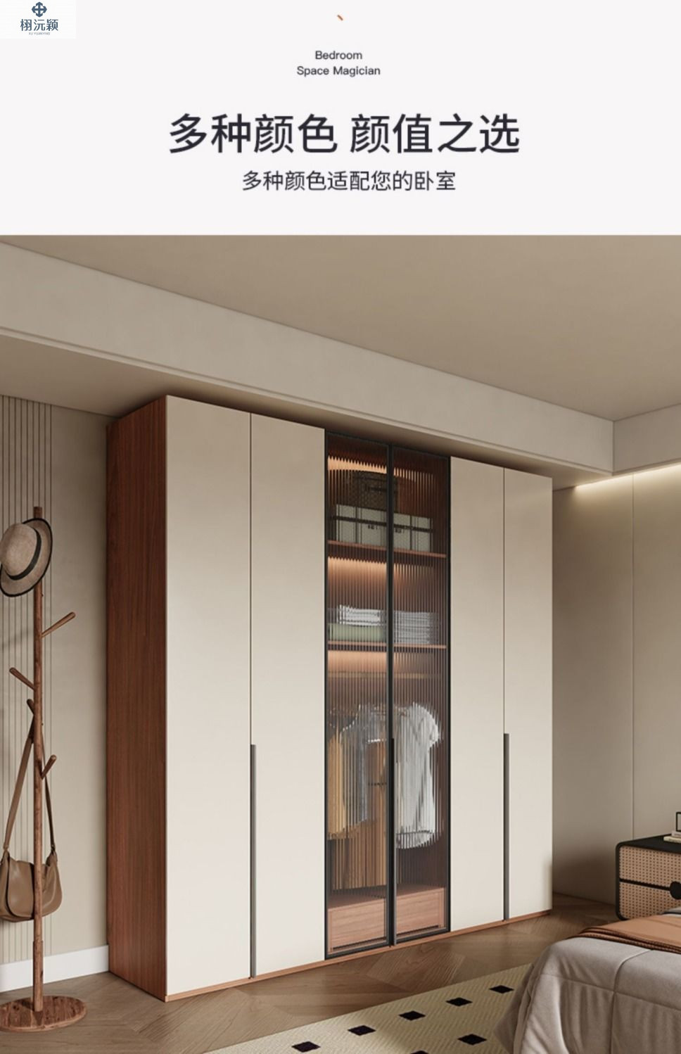 Changhong 유리 원 도어 옷장 홈 마스터 침실 현대적인 간단한 단단한 나무 유럽 소나무 호두 색상 옷장 캐비닛