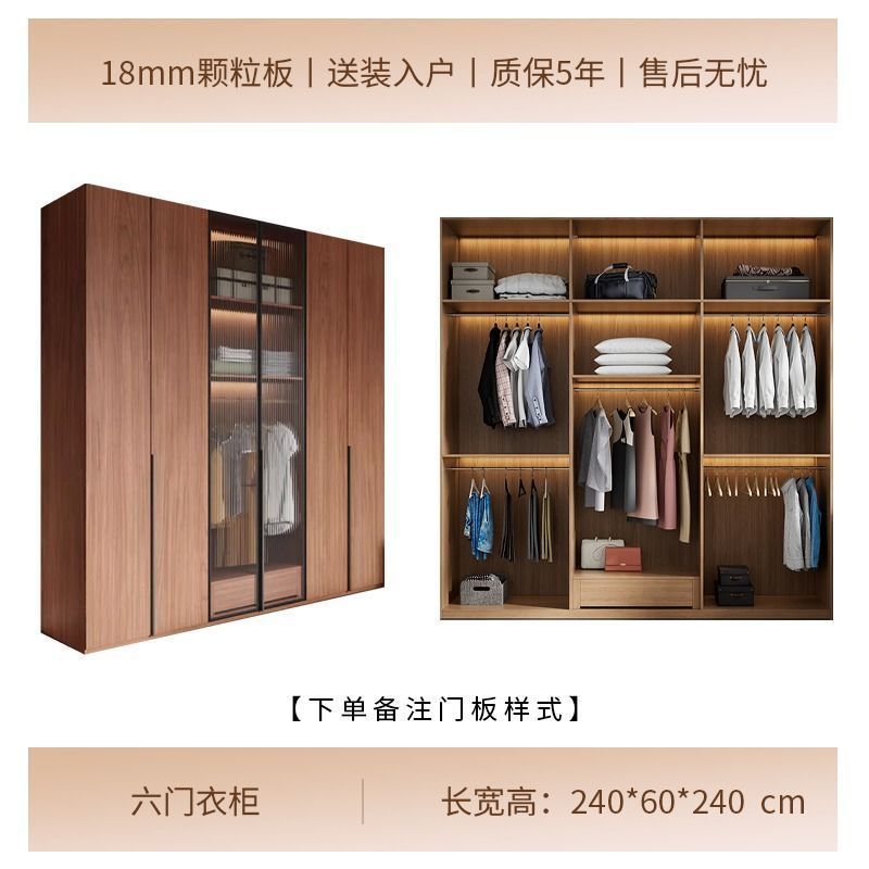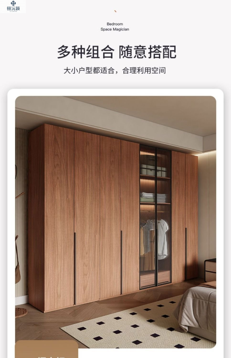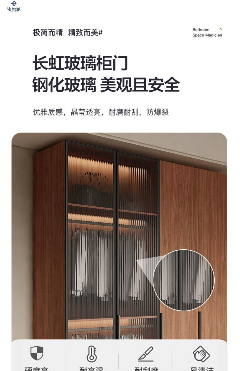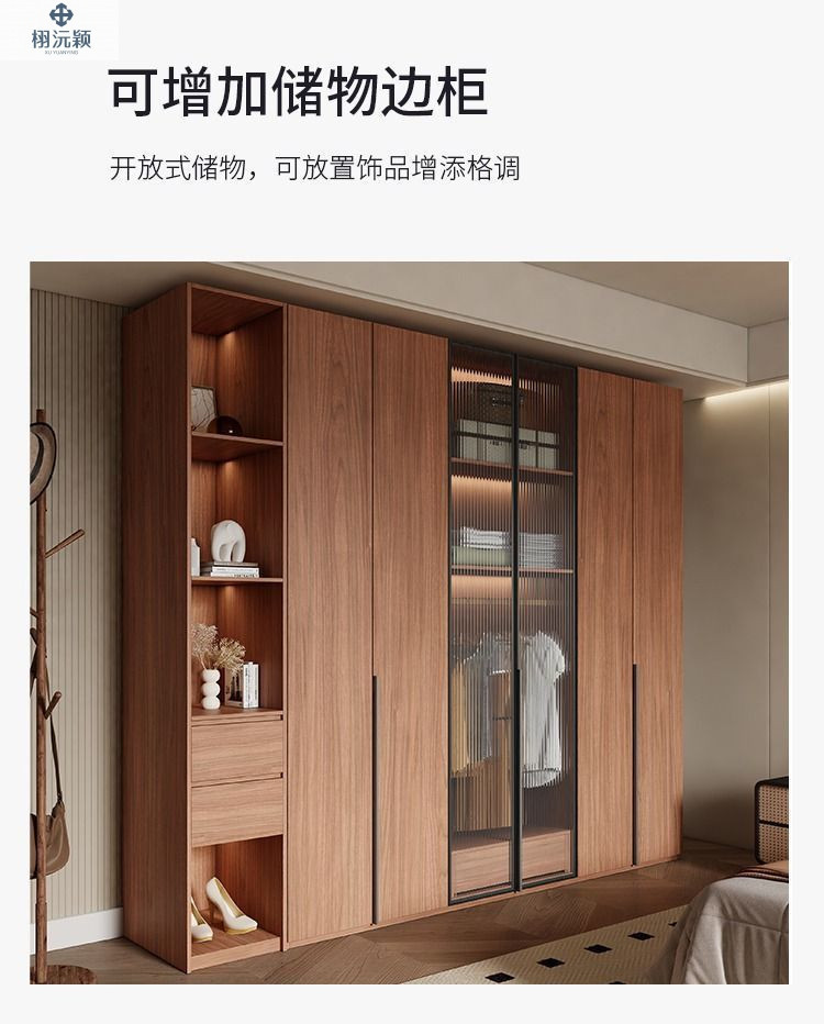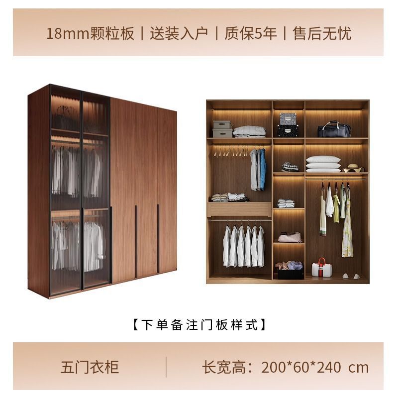 Changhong 유리 원 도어 옷장 홈 마스터 침실 현대적인 간단한 단단한 나무 유럽 소나무 호두 색상 옷장 캐비닛