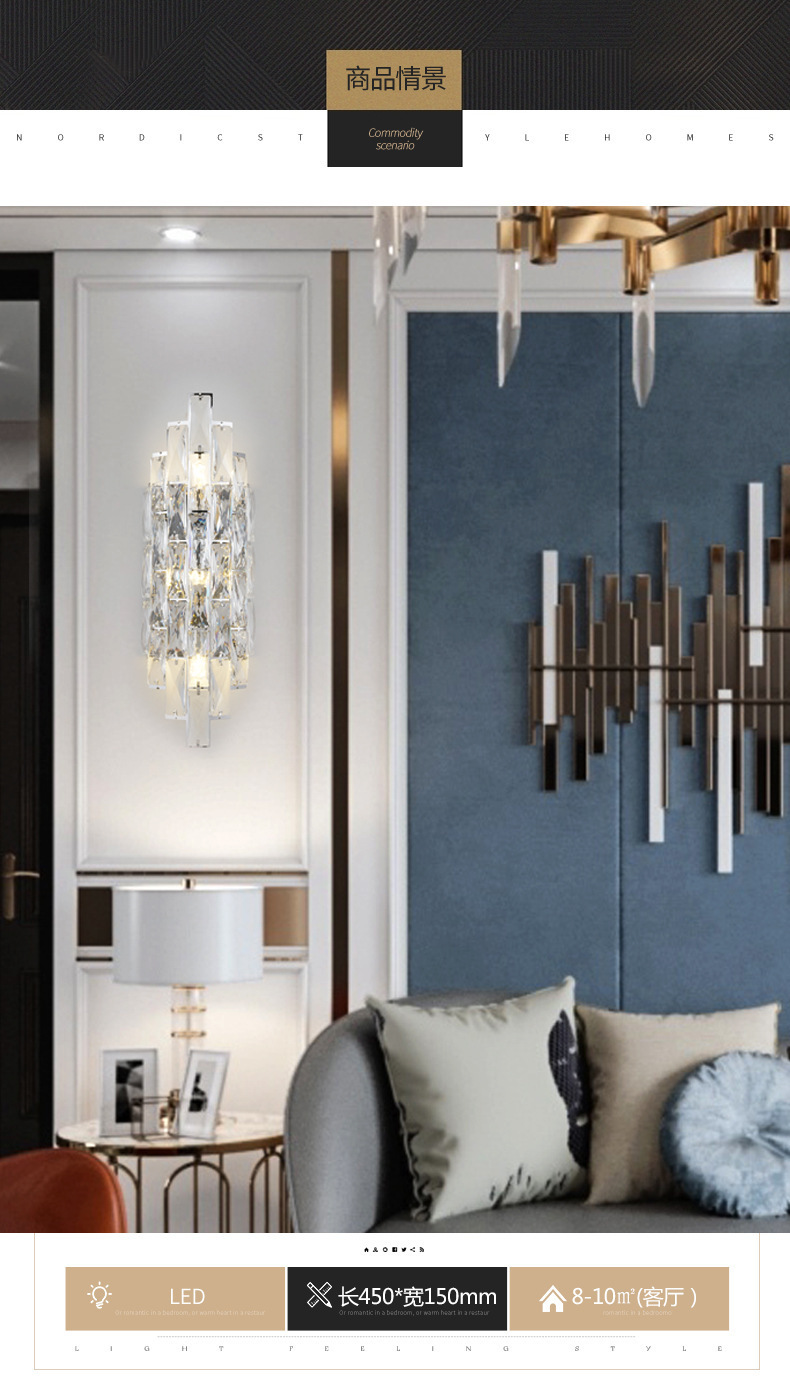 라이트 럭셔리 크리스탈 벽 램프 빌라 호텔 거실 배경 벽 교수형 램프 침실 머리맡 램프 크리 에이 티브 계단 통로 램프스토어 가기