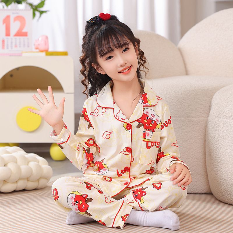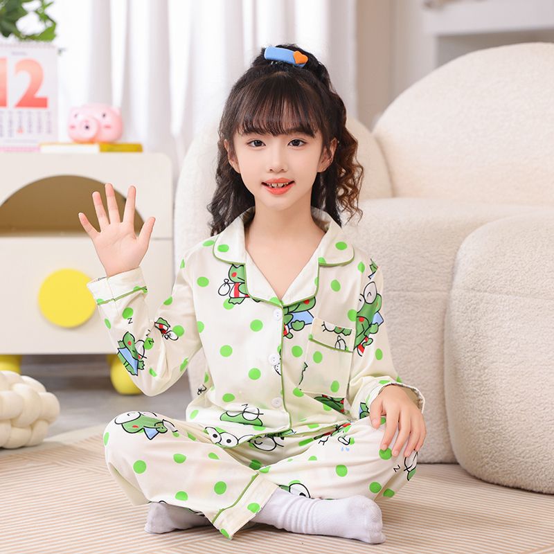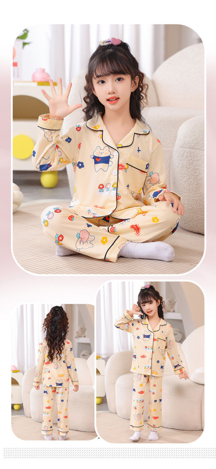 봄과 가을 어린이 긴팔 카디건 정장 소녀 태국 잠옷 2024 새로운 아기 가을 옷과 가을 바지 가정 의류스토어 가기