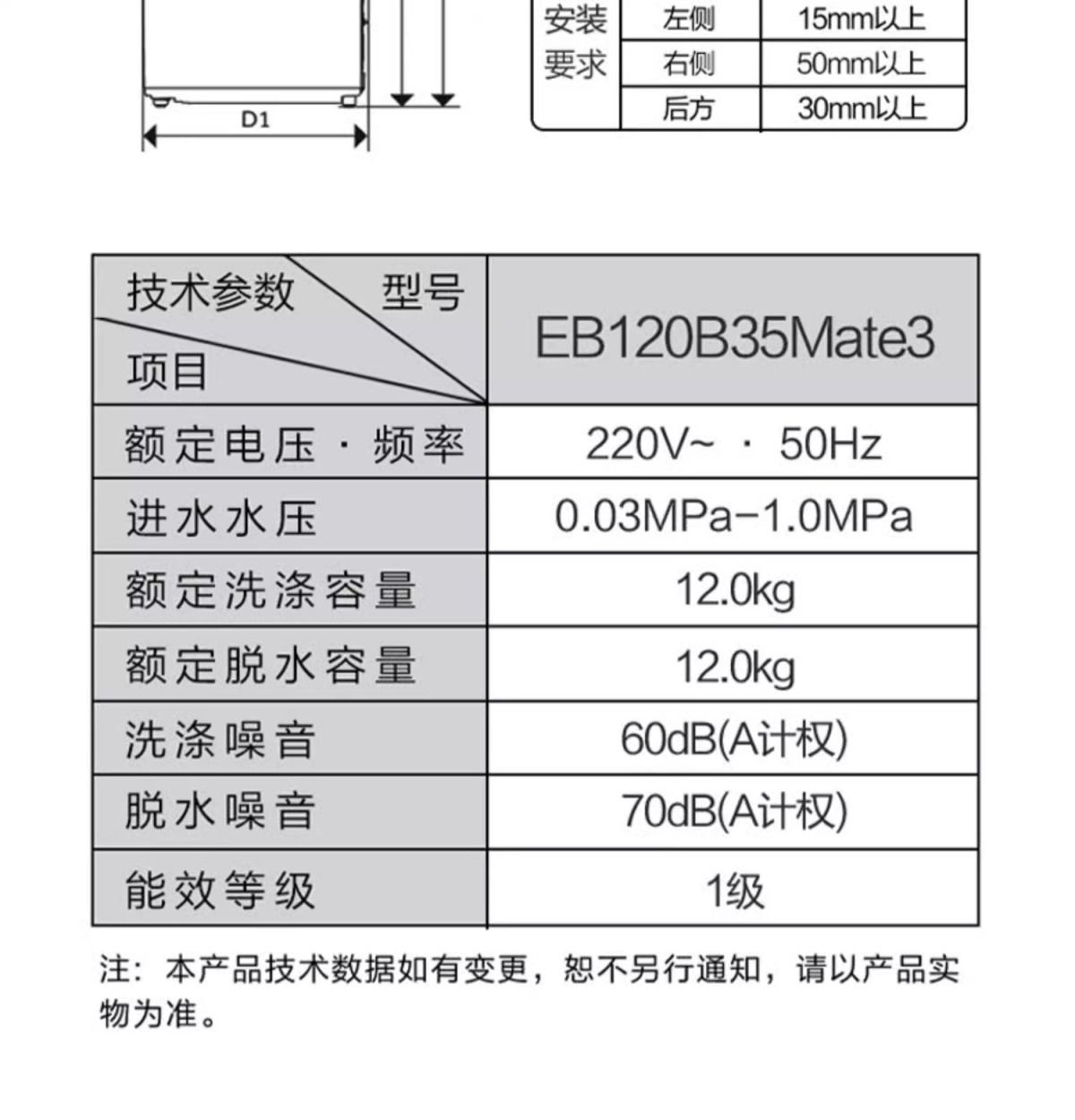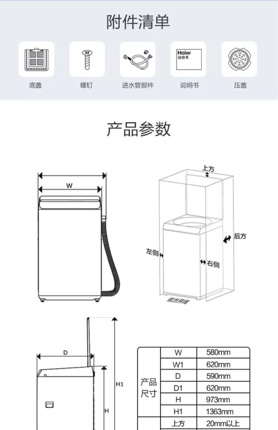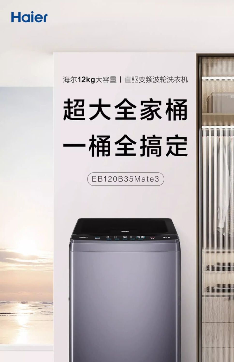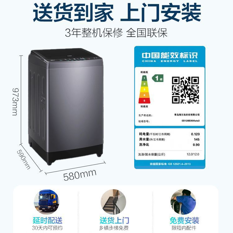 하이얼 직접 드라이브 주파수 변환 12kg 맥동기 가정용 자동 대용량 지능형 세탁기 EB120B35Mate3