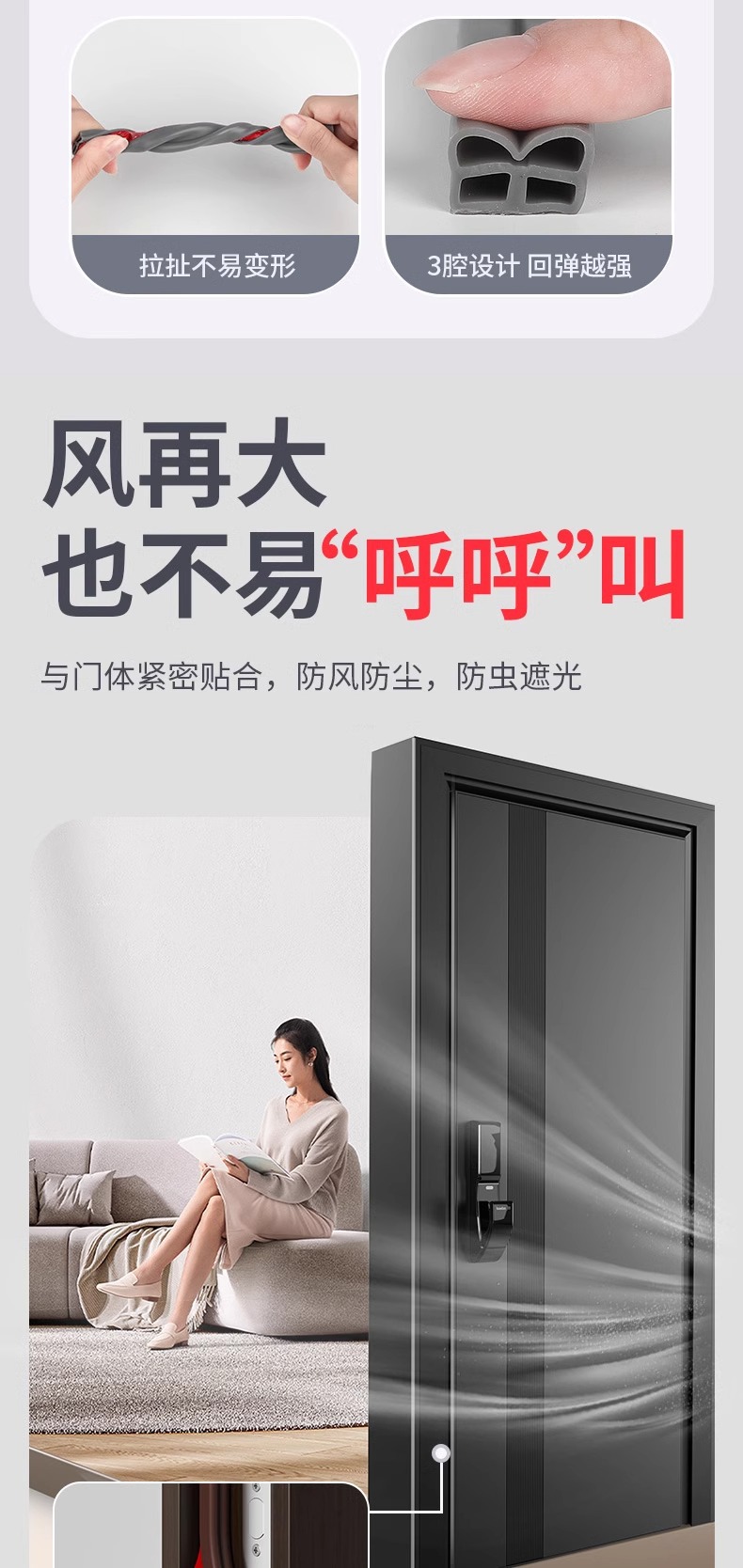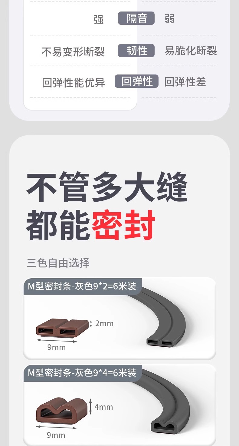 • 회색 9*2mm- 6m 팩 [이중 구멍 방음 씰]