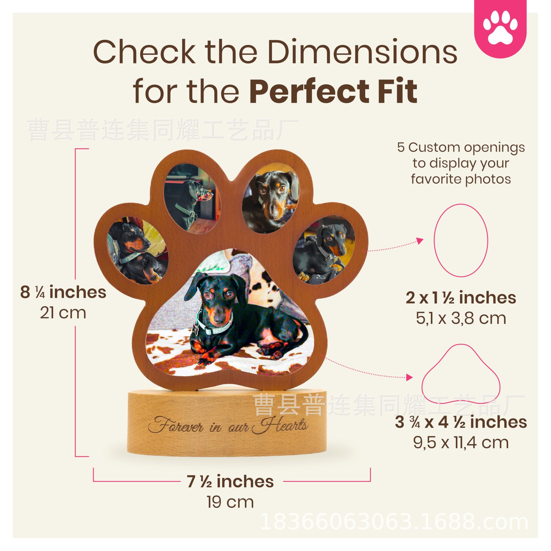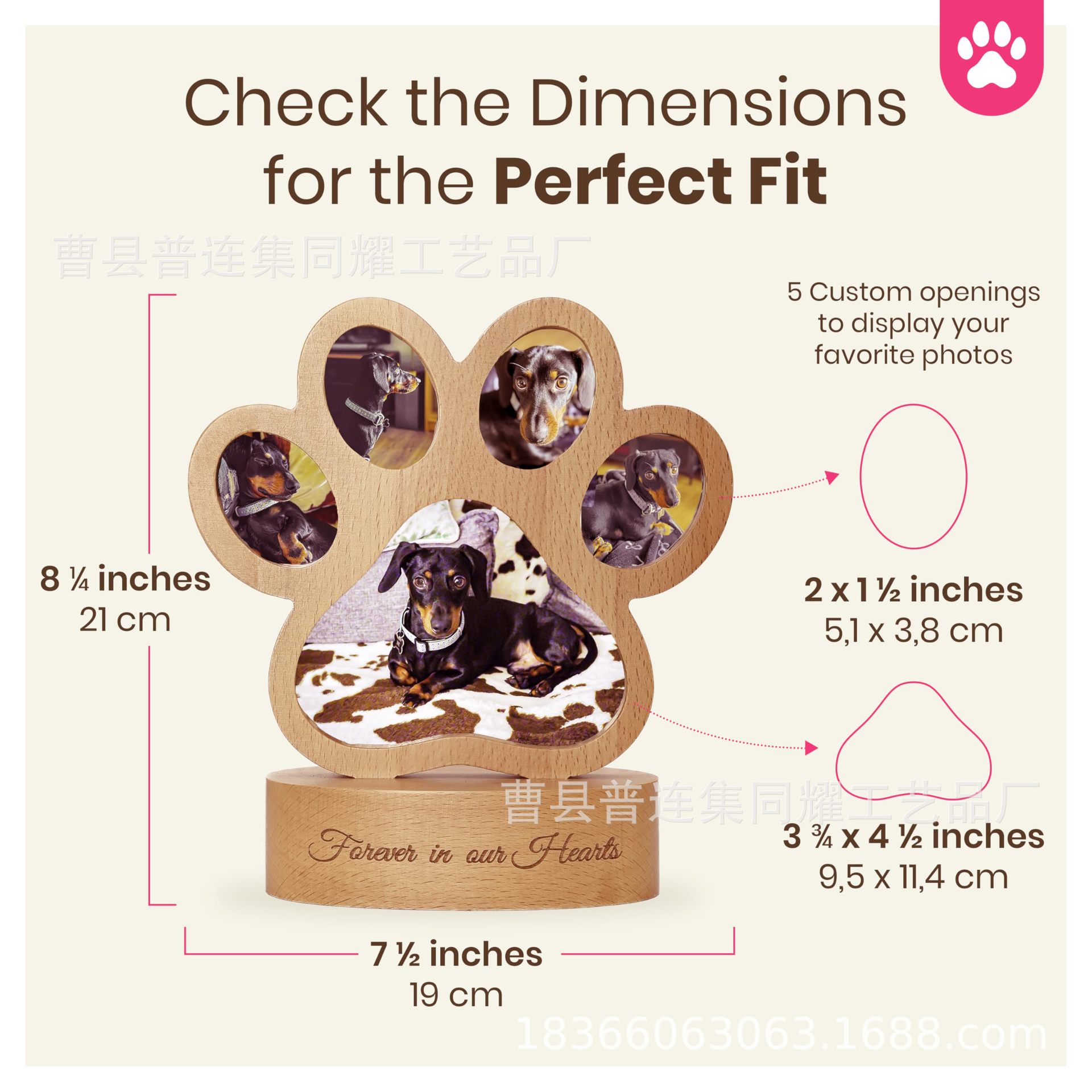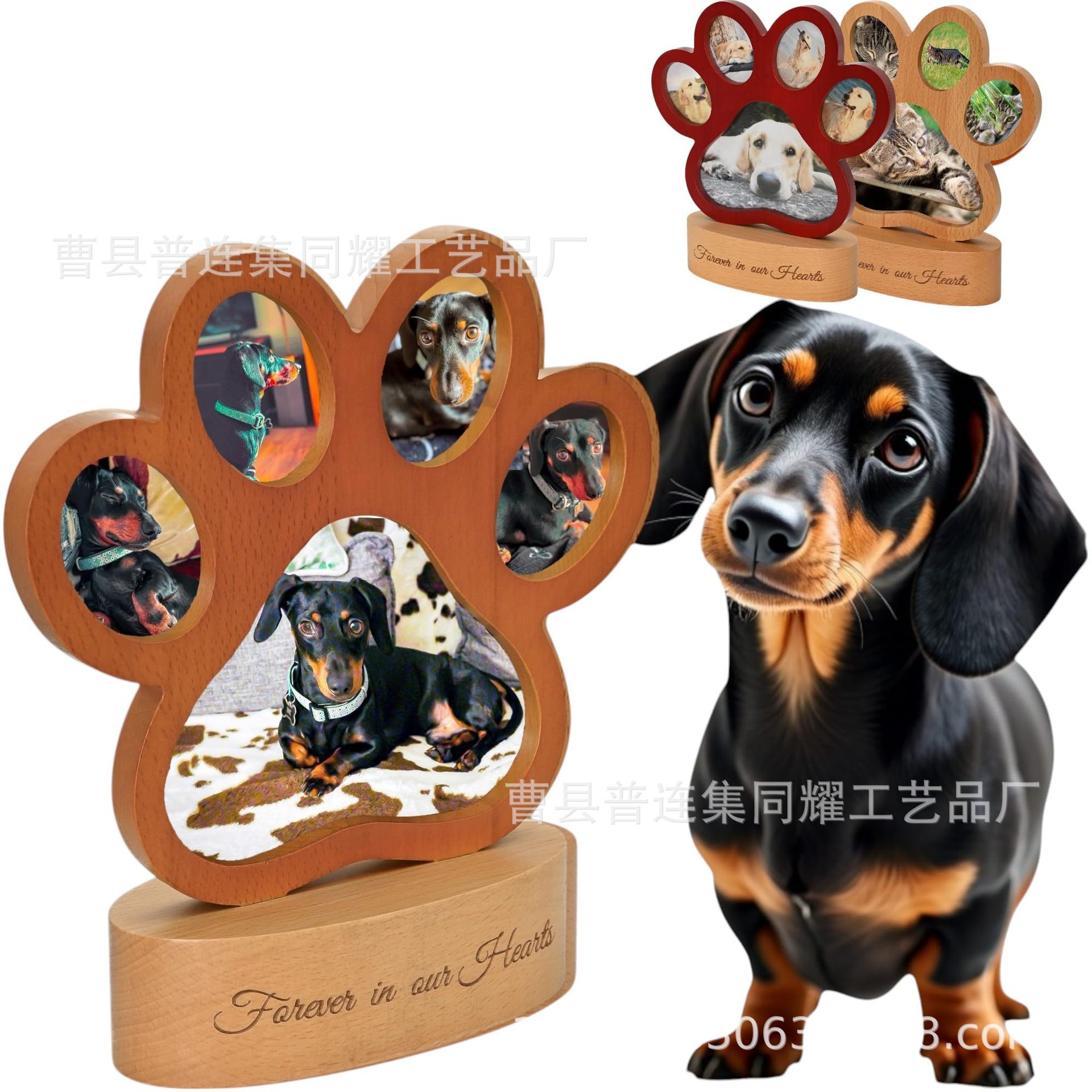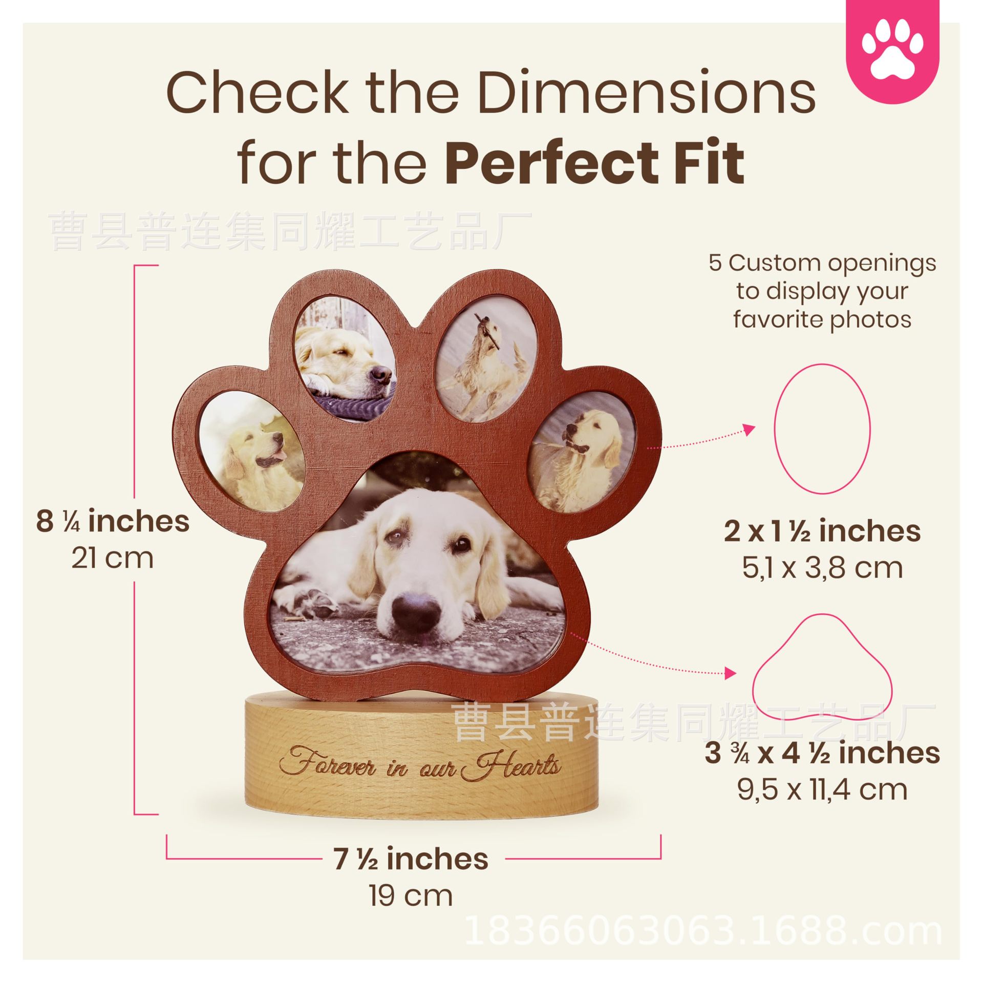 국경 간 단단한 나무 애완 동물 사진 프레임 발자국 모양 기념 프레임 크리 에이 티브 데스크탑 장식품 나무 개 기념 사진 프레임스토어 가기