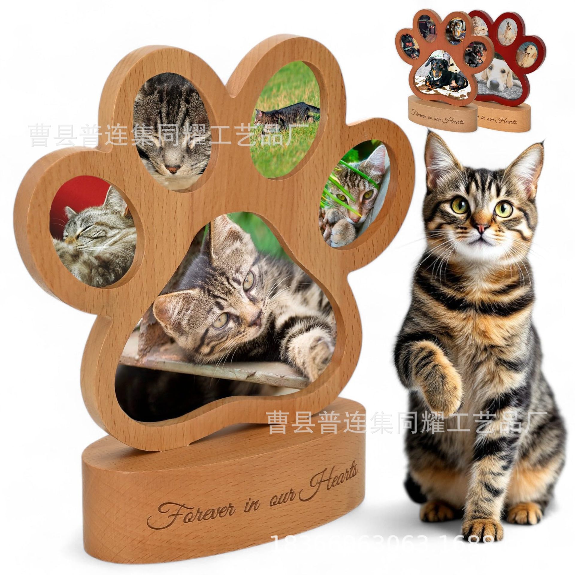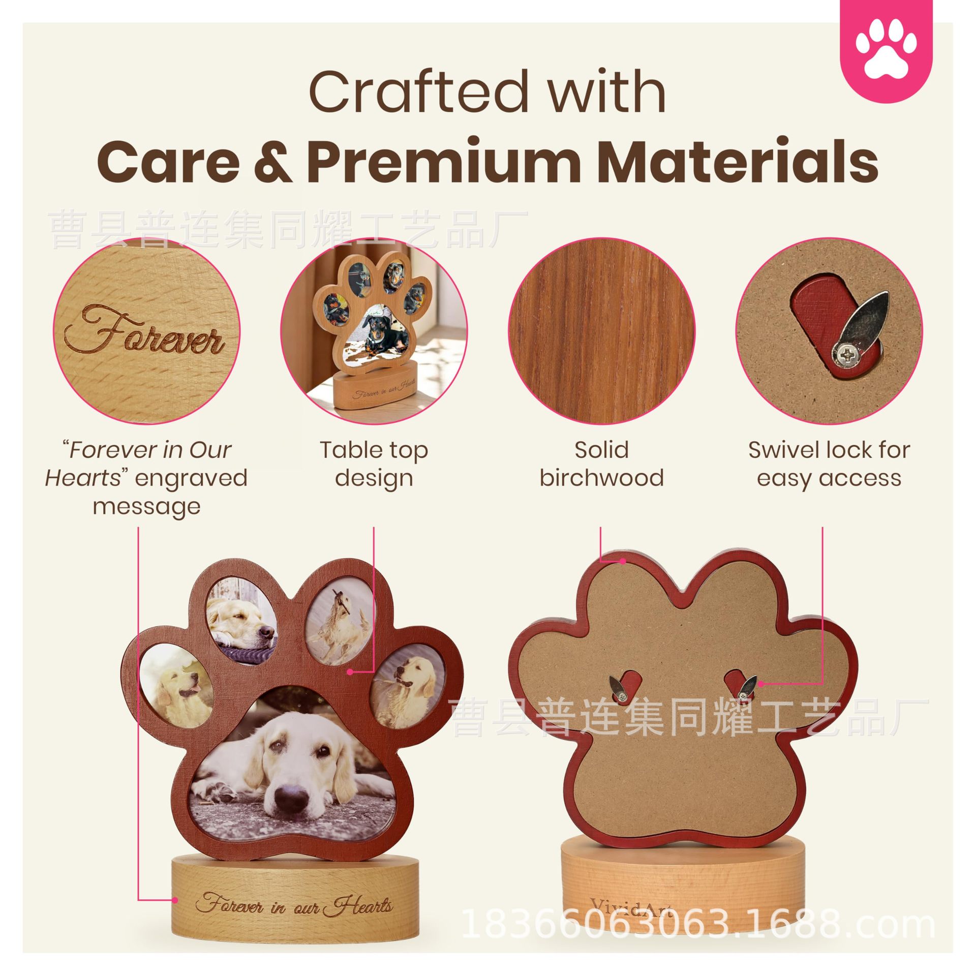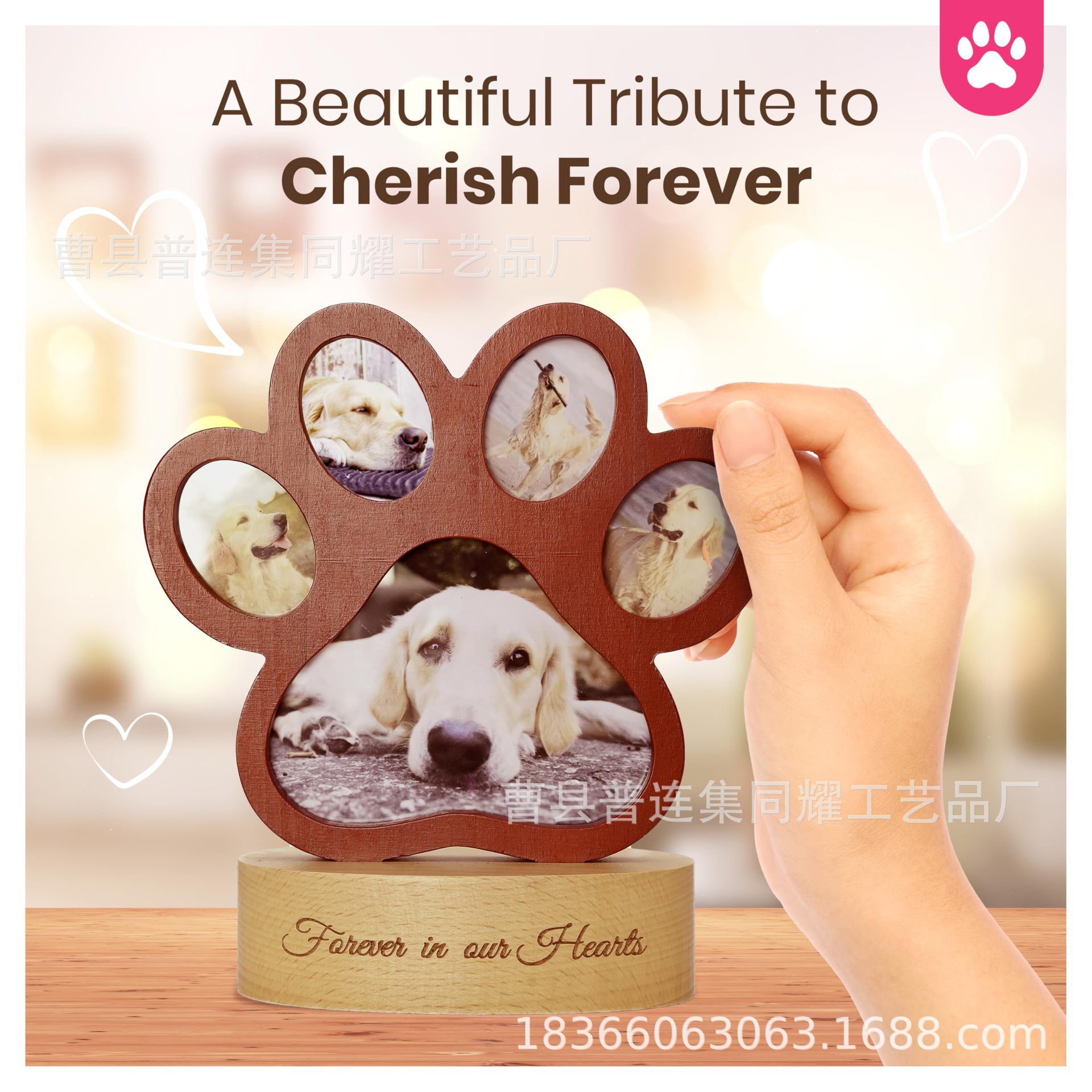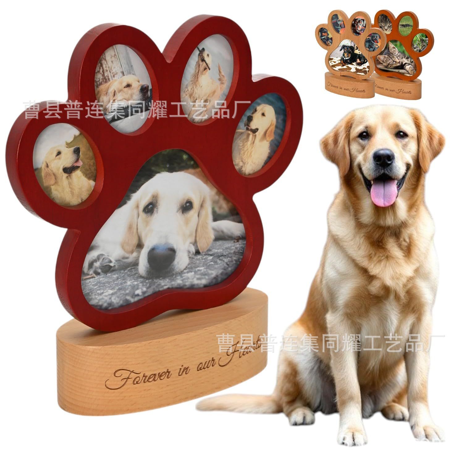 국경 간 단단한 나무 애완 동물 사진 프레임 발자국 모양 기념 프레임 크리 에이 티브 데스크탑 장식품 나무 개 기념 사진 프레임스토어 가기