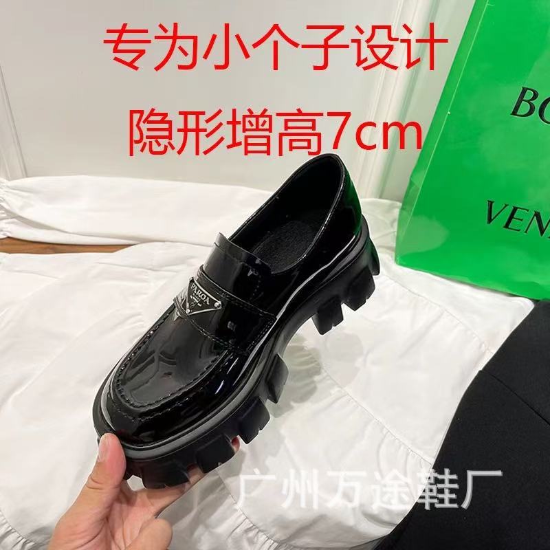 2024년 신상 여성용 로퍼, 천연 가죽 라운드 토 삼각 로고 플랫폼 슈즈, 슬립온 가죽 신발, 키높이 하이힐스토어 가기