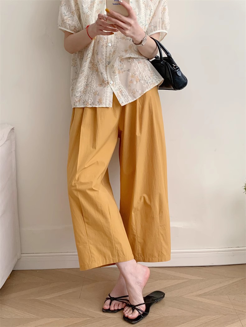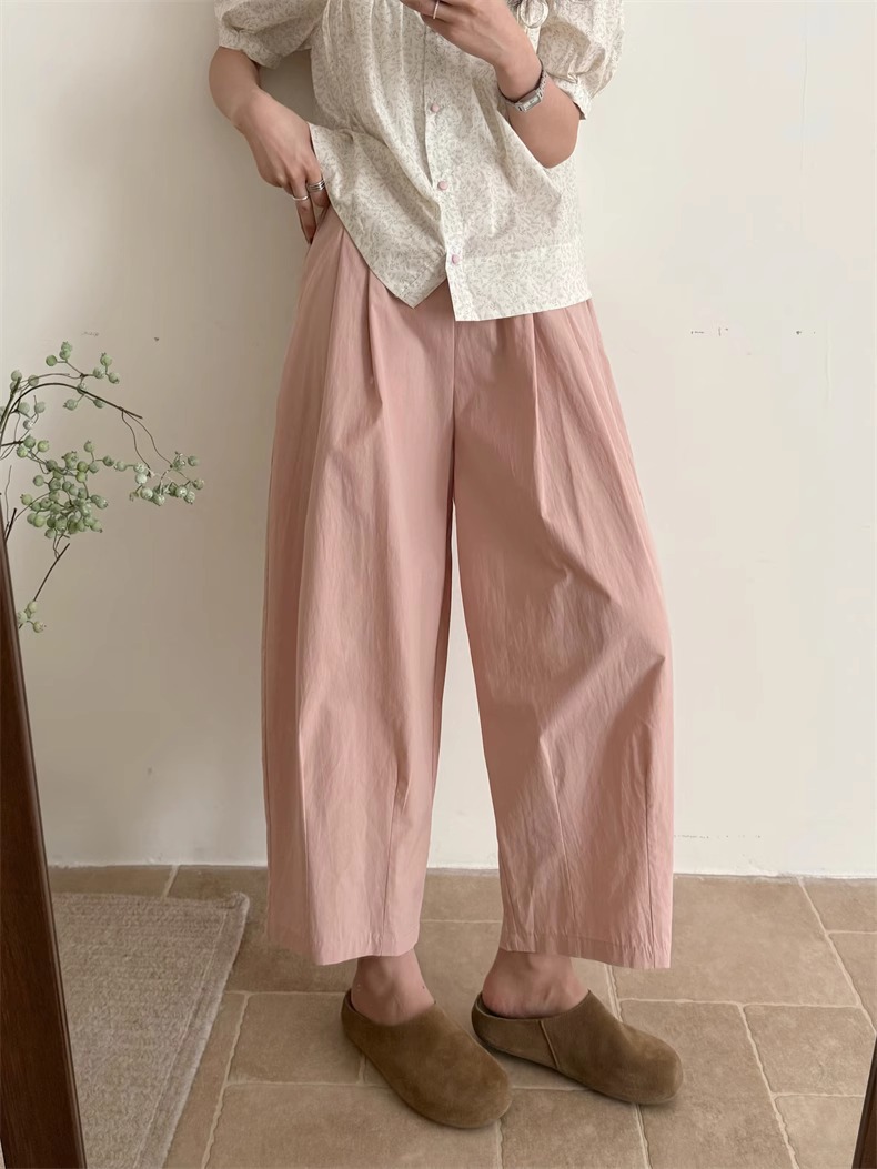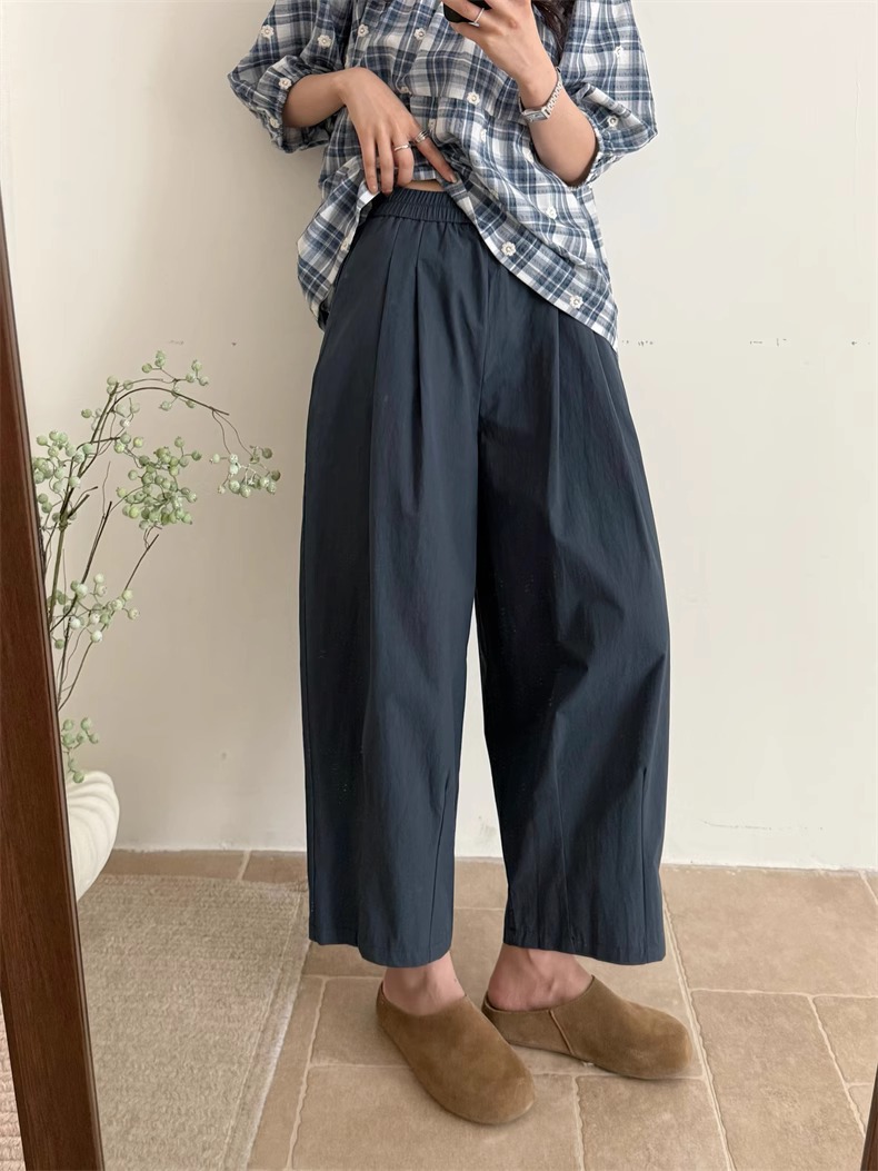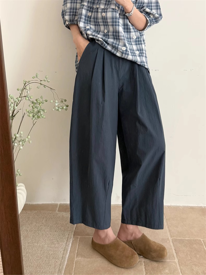 2025夏新款爆款日系纸片裤女薄宽松梨形身材小个子九分阔腿裤女
