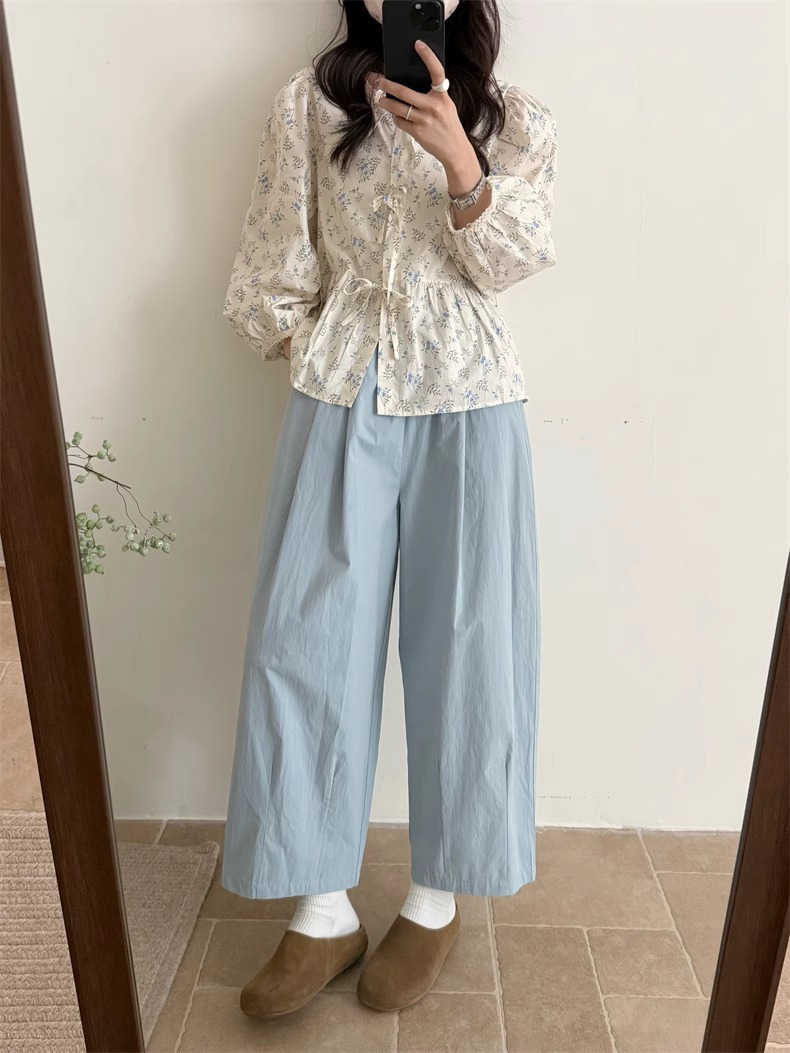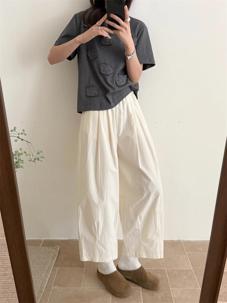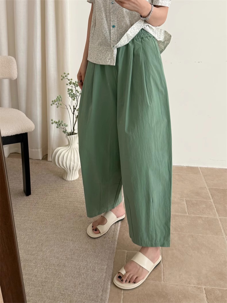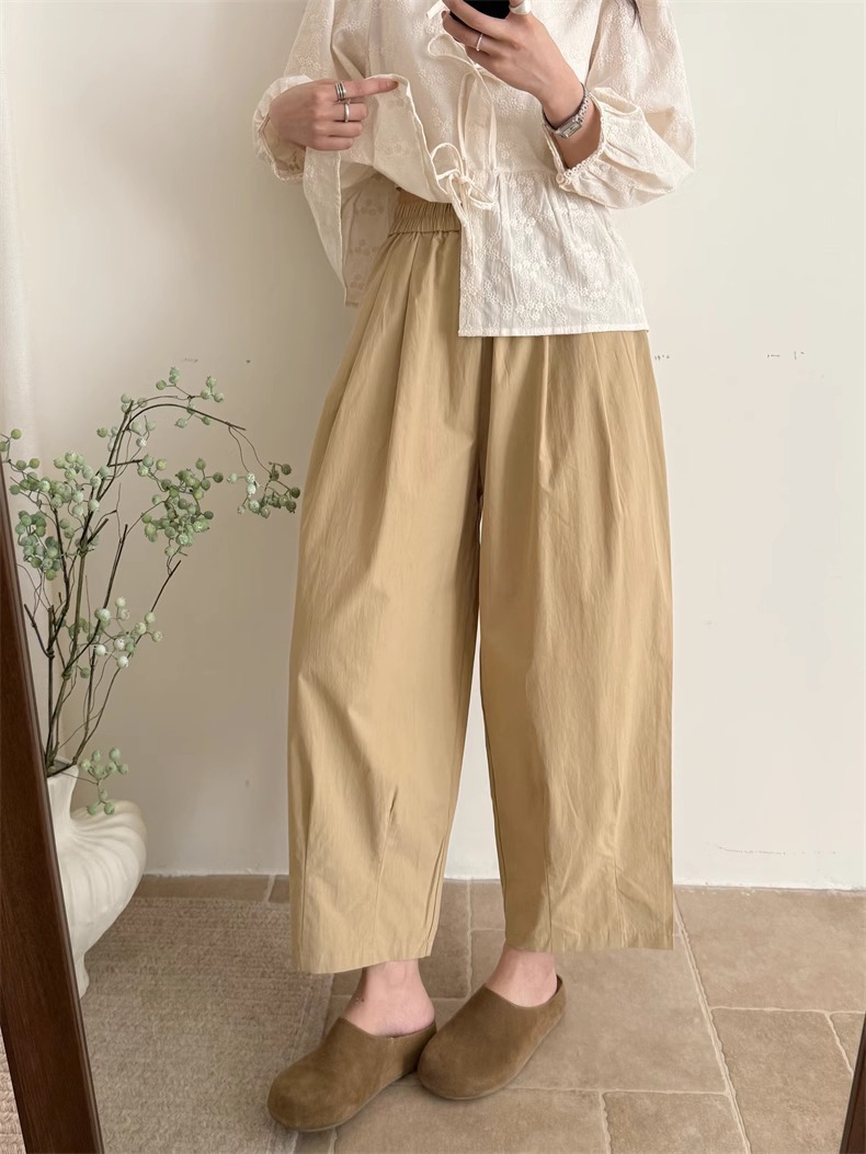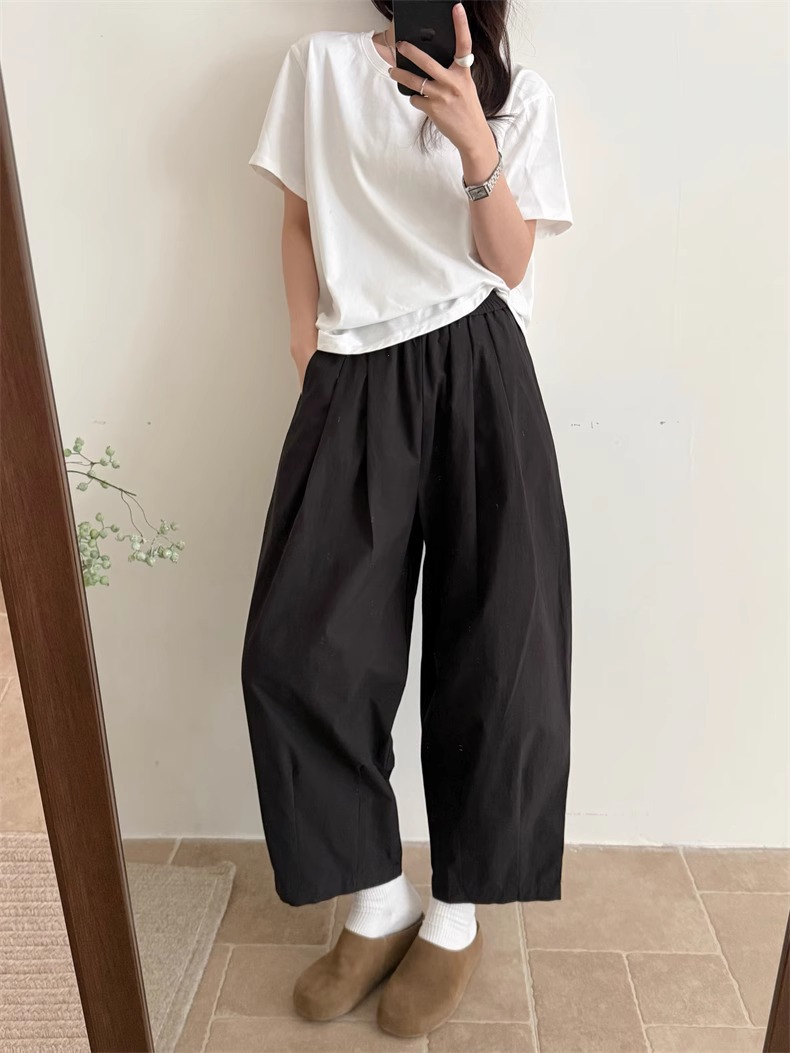 2025夏新款爆款日系纸片裤女薄宽松梨形身材小个子九分阔腿裤女