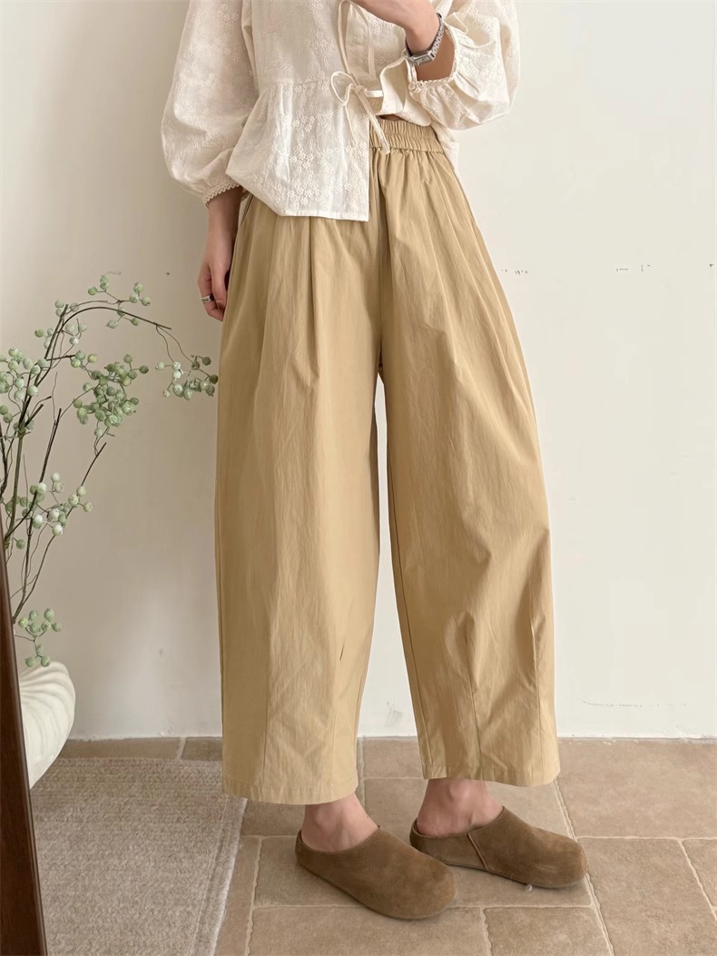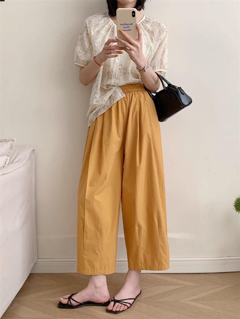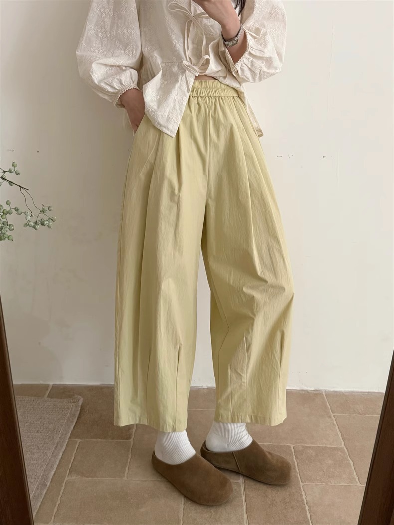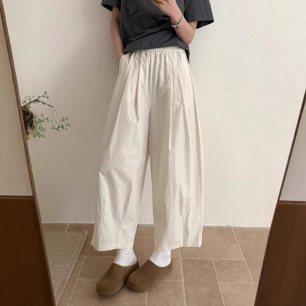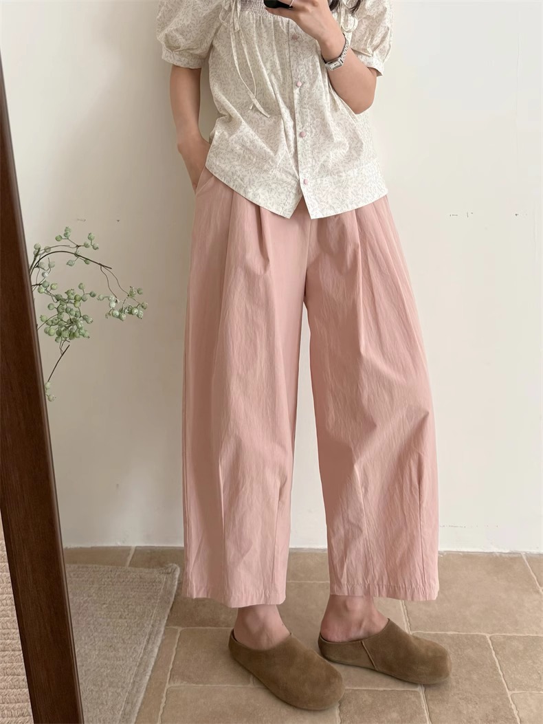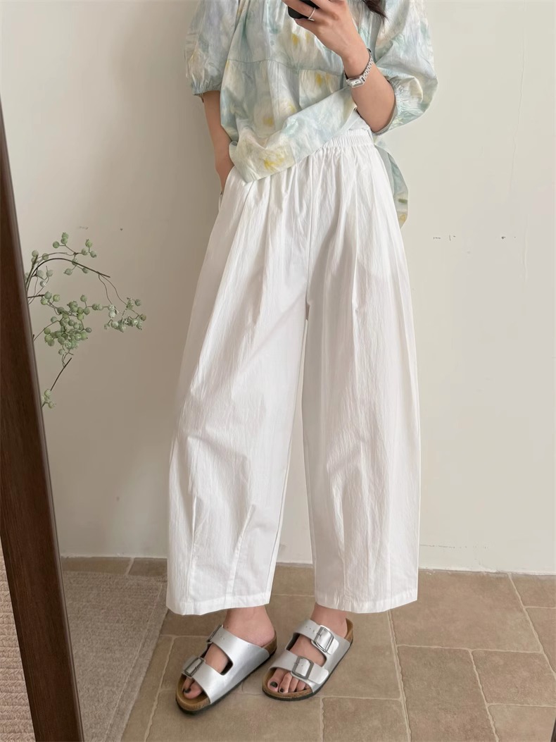 2025 년 여름 새로운 폭발 일본 종이 바지 여성용 얇은 느슨한 배 모양의 짧은 자른 넓은 다리 바지스토어 가기