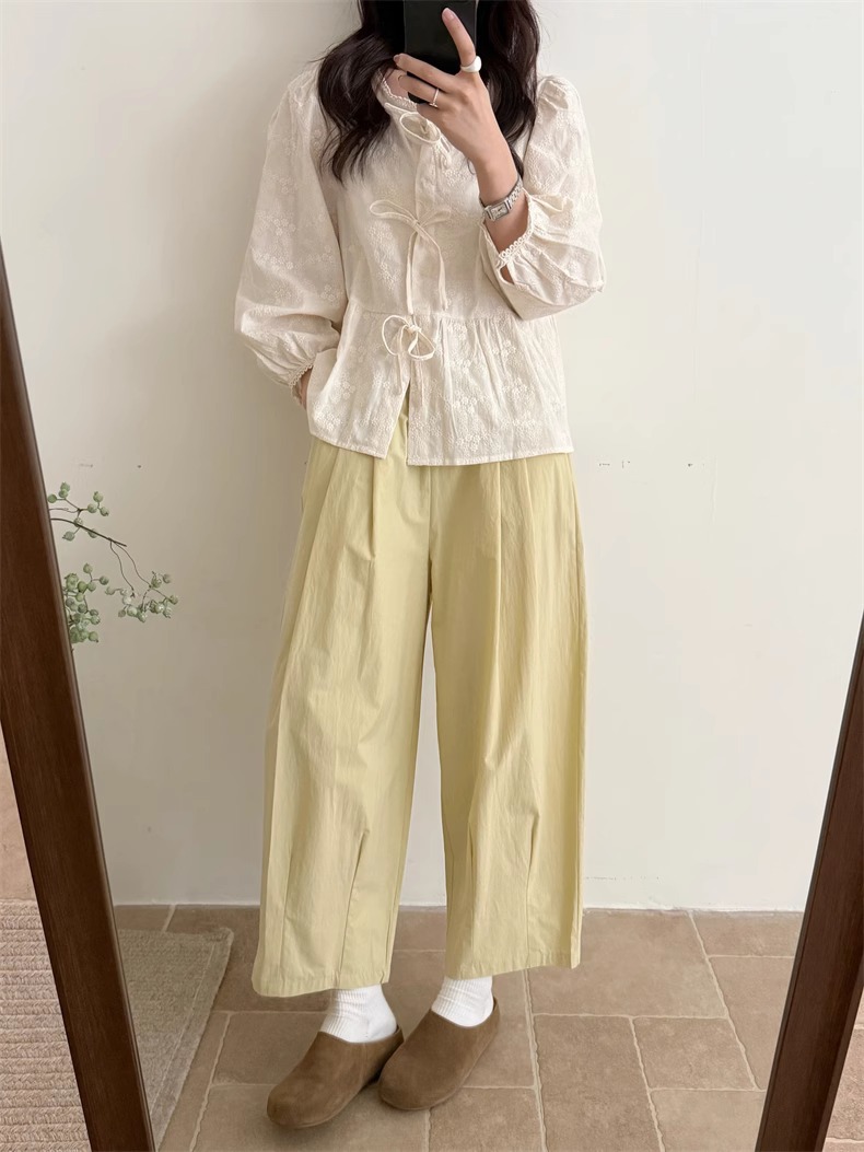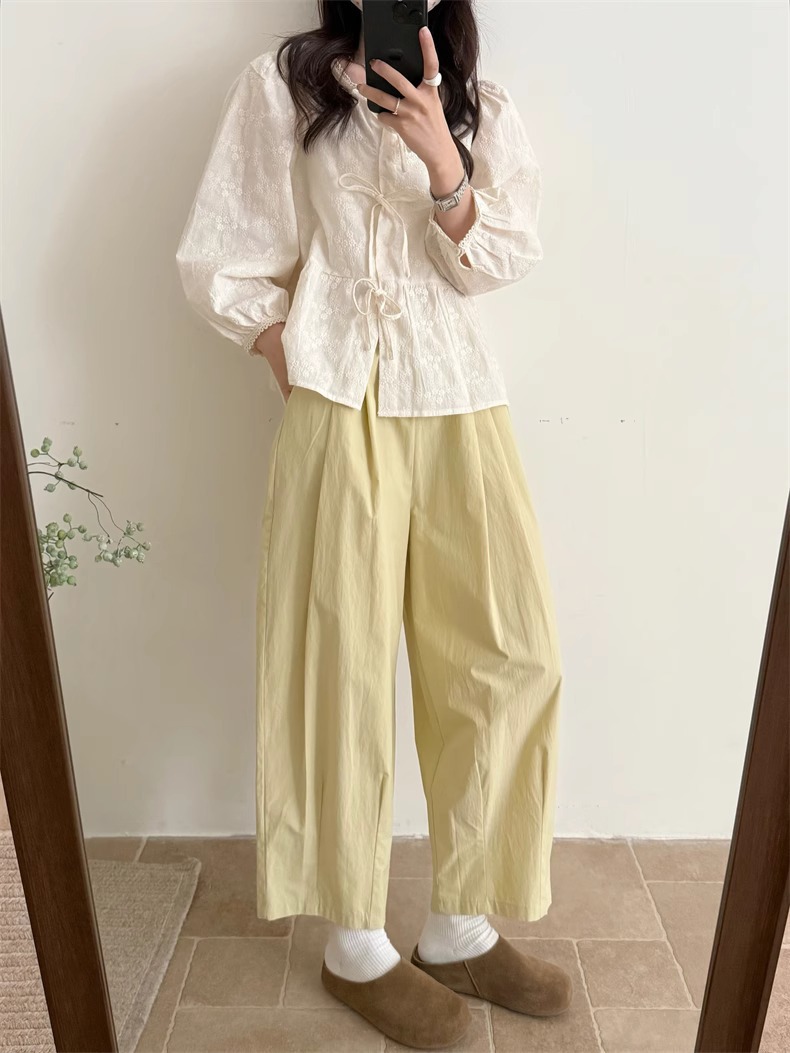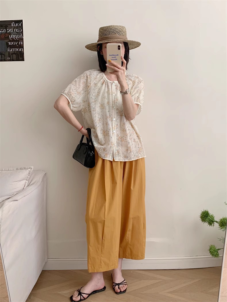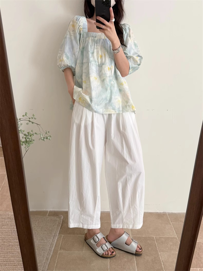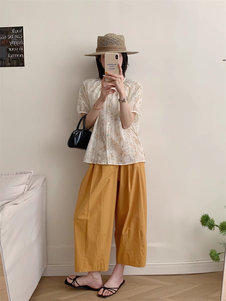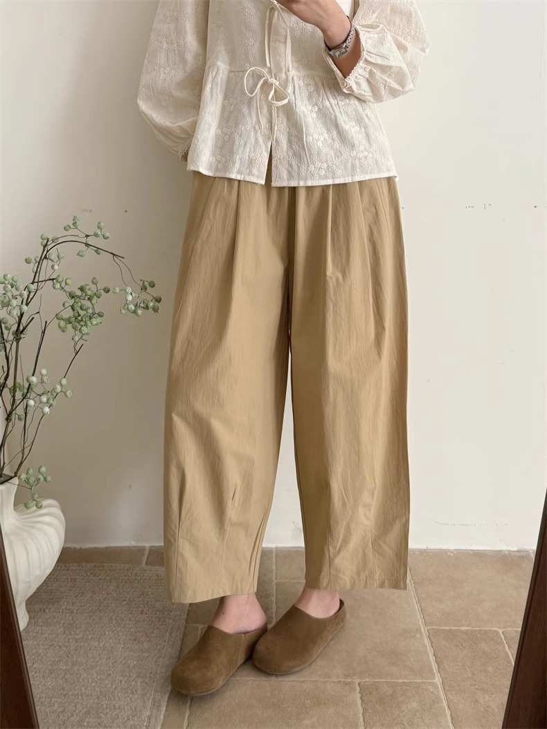 2025 년 여름 새로운 폭발 일본 종이 바지 여성용 얇은 느슨한 배 모양의 짧은 자른 넓은 다리 바지스토어 가기