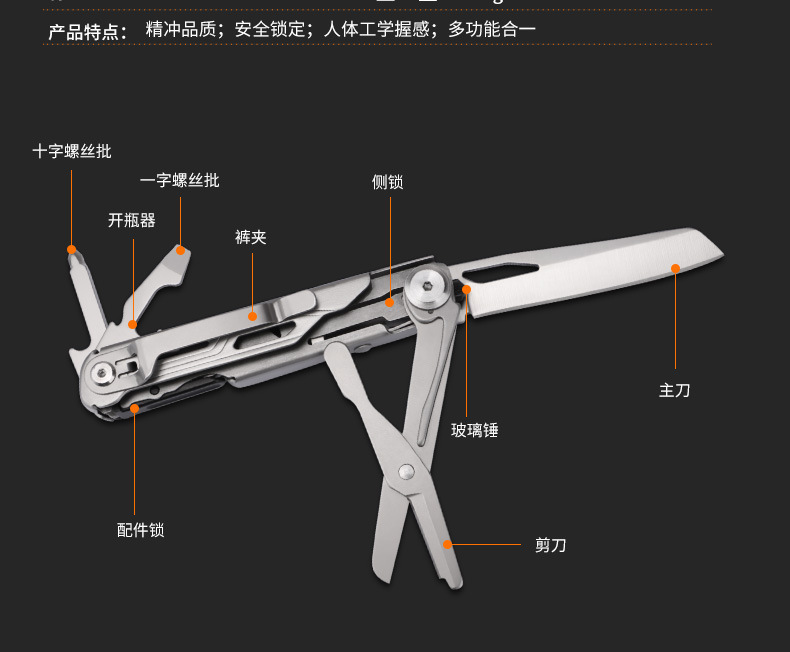 다기능 6-in-1 자동차 안전 망치 창문 파괴자 휴대용 칼 및 가위 조합 도구 망치 캠핑 자동차 생존 칼