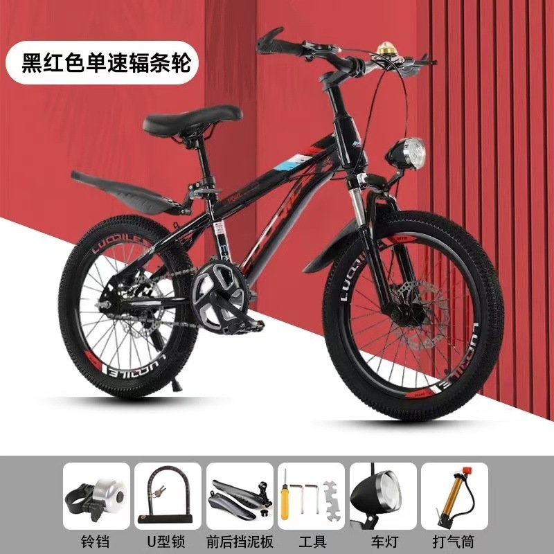 • [블랙 + 레드] 단일 속도 스포크 휠 충격 흡수 디스크 브레이크 [선물 패키지] - Luo Qile 22inch [신장 138-155에 적합]
