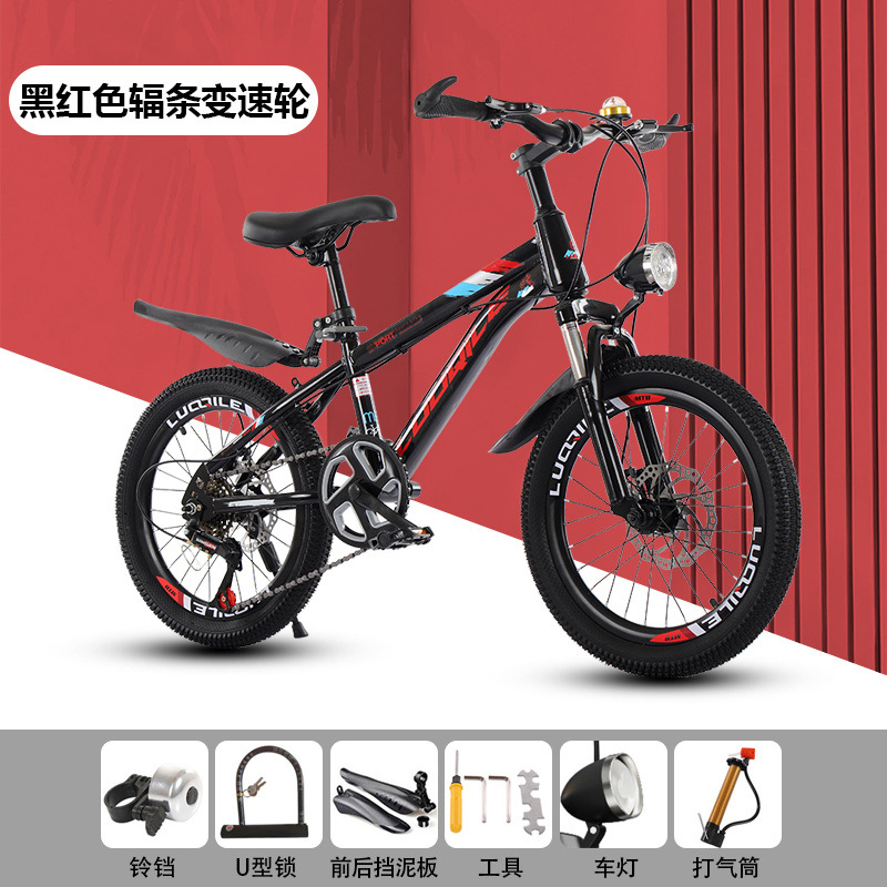 • [블랙 + 레드] 가변 속도 스포크 휠 충격 흡수 디스크 브레이크 [선물 패키지] - Luo Qile 22inch [신장 138-155에 적합]