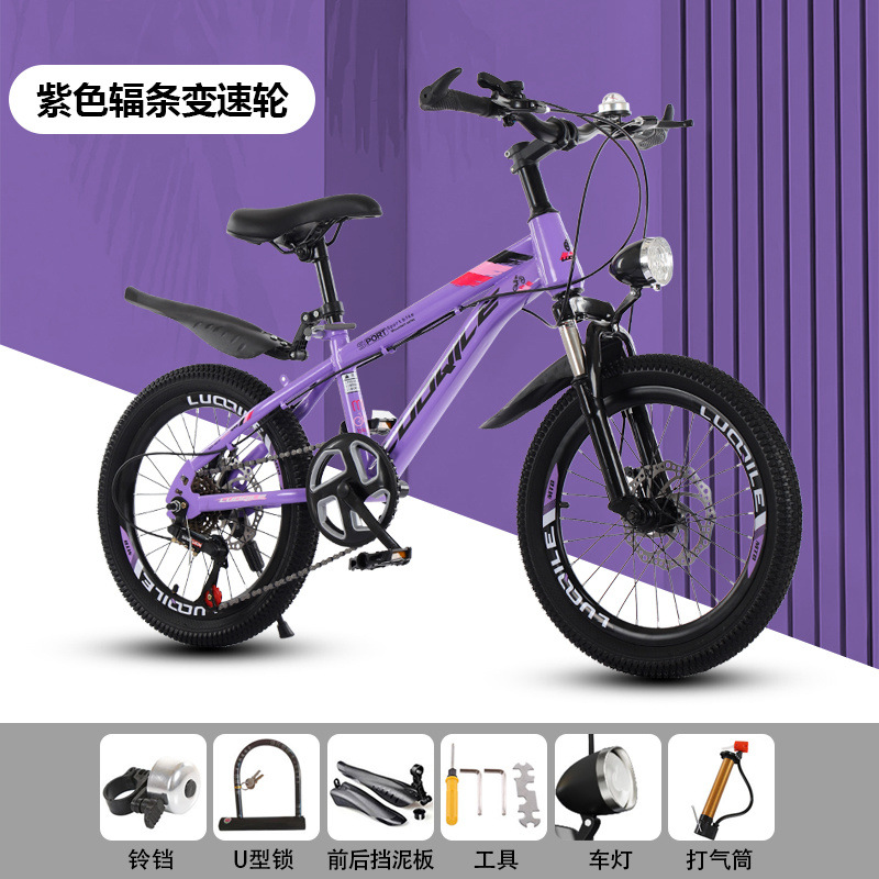 • [쿨 퍼플] 가변 속도 스포크 휠 충격 흡수 디스크 브레이크 [선물 패키지] - Luo Qile 22inch [신장 138-155에 적합]