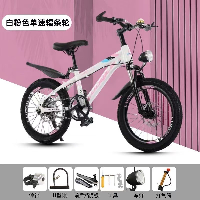 • [화이트 + 핑크] 단일 속도 스포크 휠 충격 흡수 디스크 브레이크 [선물 패키지] - Luo Qile 20inch [신장 128-143에 적합]