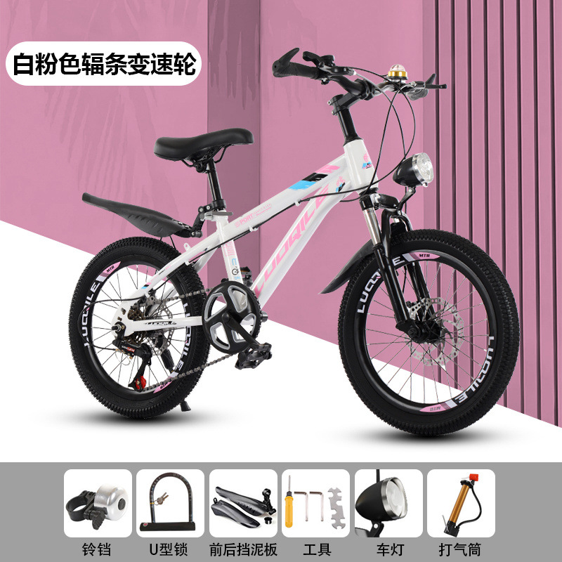 • [화이트 + 핑크] 가변 속도 스포크 휠 충격 흡수 디스크 브레이크 [선물 패키지] - Luo Qile 20inch [신장 128-143에 적합]