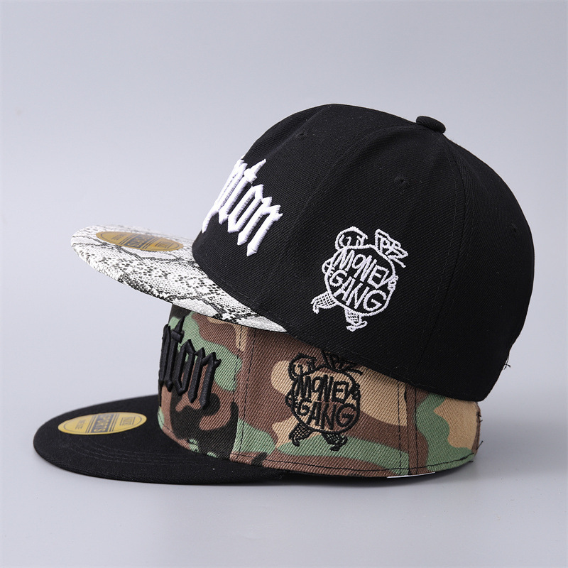 국경 간 인기 판매 유럽과 미국의 콤튼 야구 모자 한국어 버전 맞춤형 힙합 플랫 챙 위장 모자 공장 스팟 배치