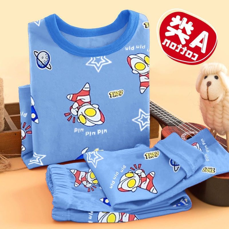 아동 속옷 세트, 남아 가을 옷과 긴 바지, 순면, 무봉제 면, 만화 울트라맨 남아용 스웨트 셔츠, 바지, 잠옷