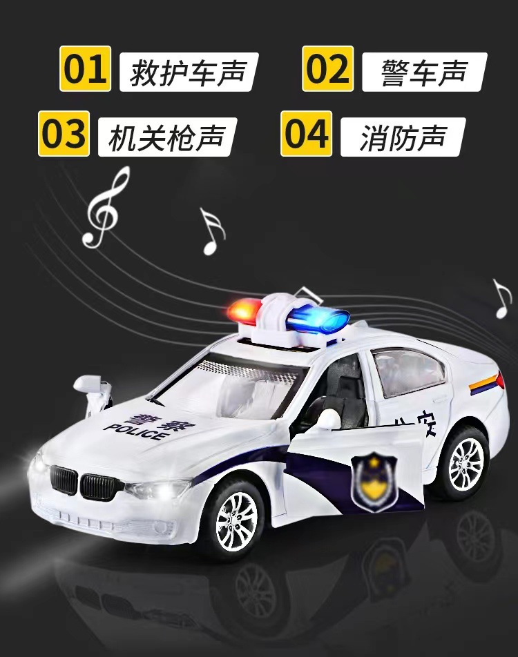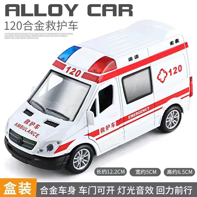 국경을 넘는 합금 경찰차 모형 장난감, 시뮬레이션 구급차, 경찰차 모형, 소년용 후진 장난감 자동차, 조명 및 음향 효과
