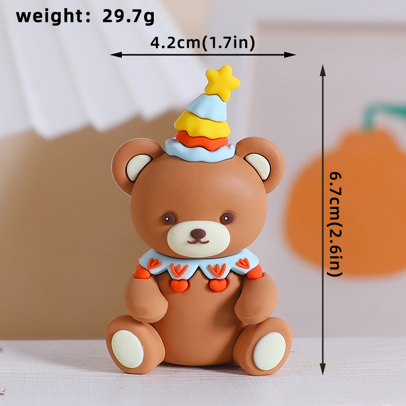 귀여운 만화 곰 부드러운 플라스틱 인형, 다채로운 곰 시리즈 자동차 장식품, 다채로운 어린이 케이크 장식