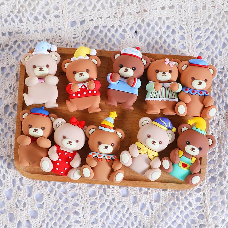귀여운 만화 곰 부드러운 플라스틱 인형, 다채로운 곰 시리즈 자동차 장식품, 다채로운 어린이 케이크 장식스토어 가기