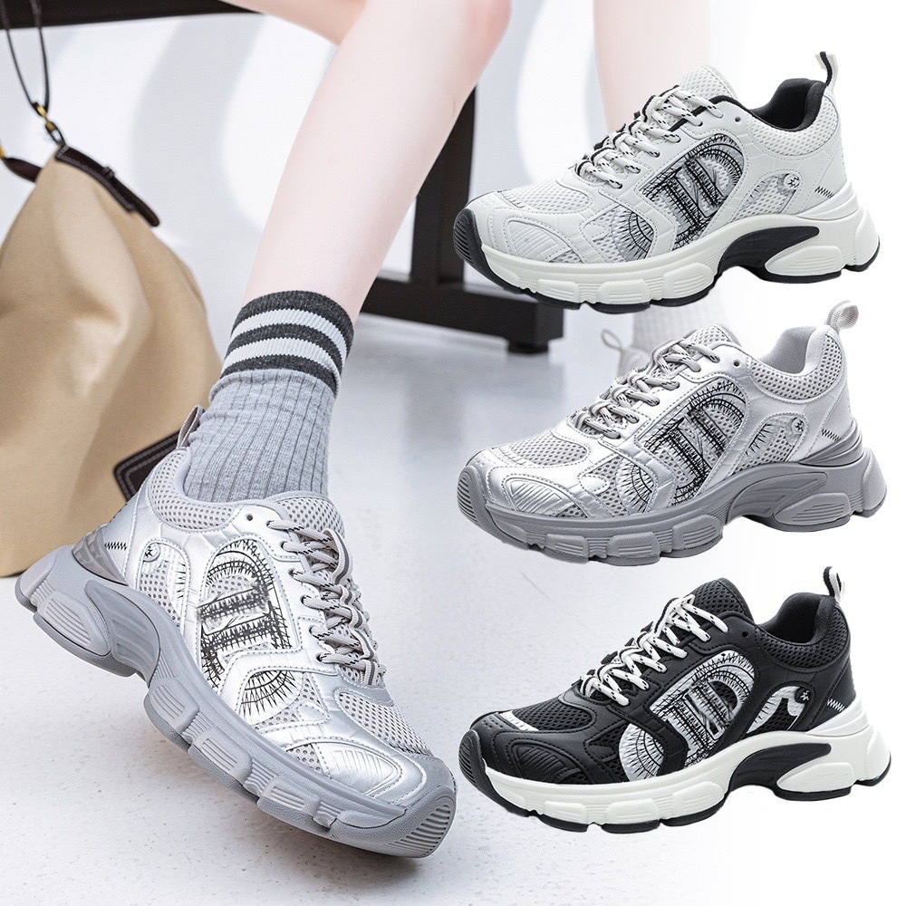 D의 최신 B30 여성용 아빠 신발 메쉬 레이스 업 다용도 캐주얼 운동화 여성용 세련된 CD 컬러 매칭 내마모성 신발