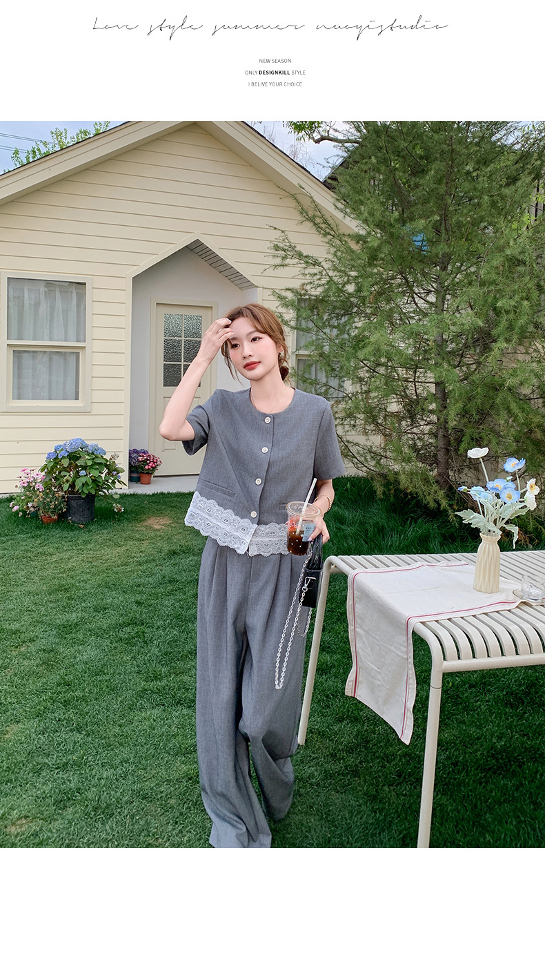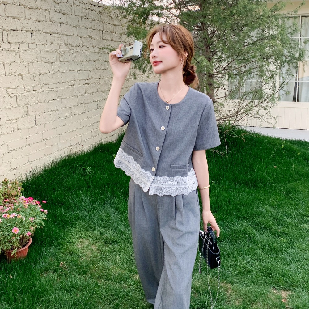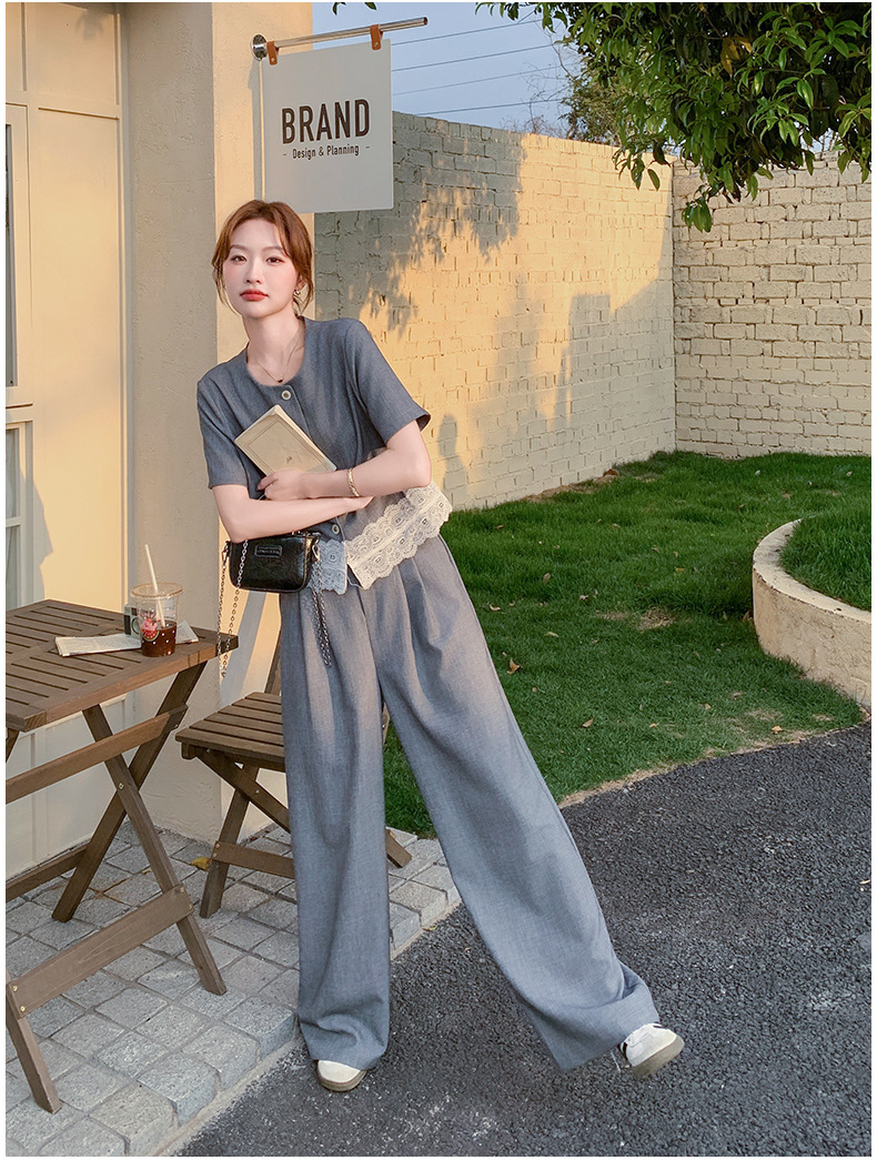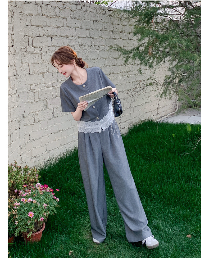 그레이 올드 머니 스타일 얇은 조끼 세트 여성 여름 새로운 캐주얼 우아한 슬리밍 스트레이트 바지 투피스 세트