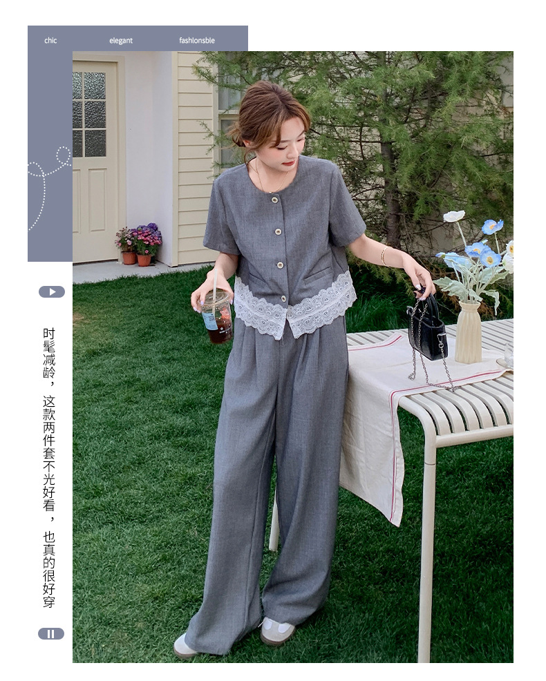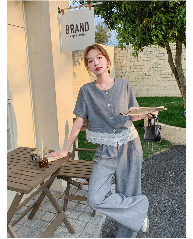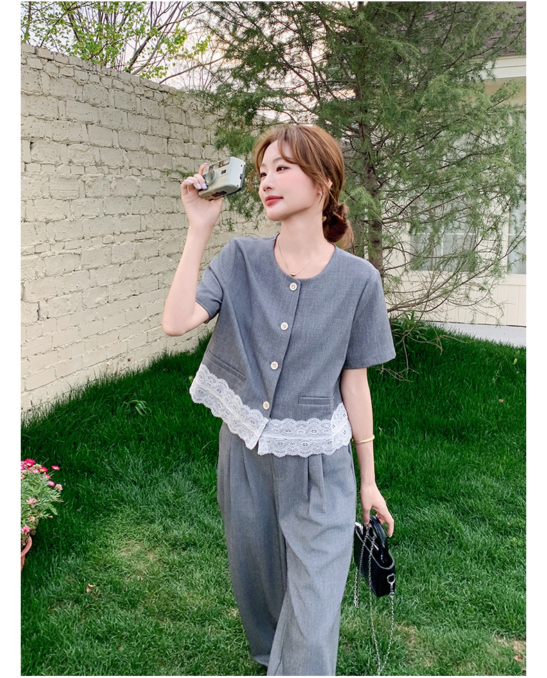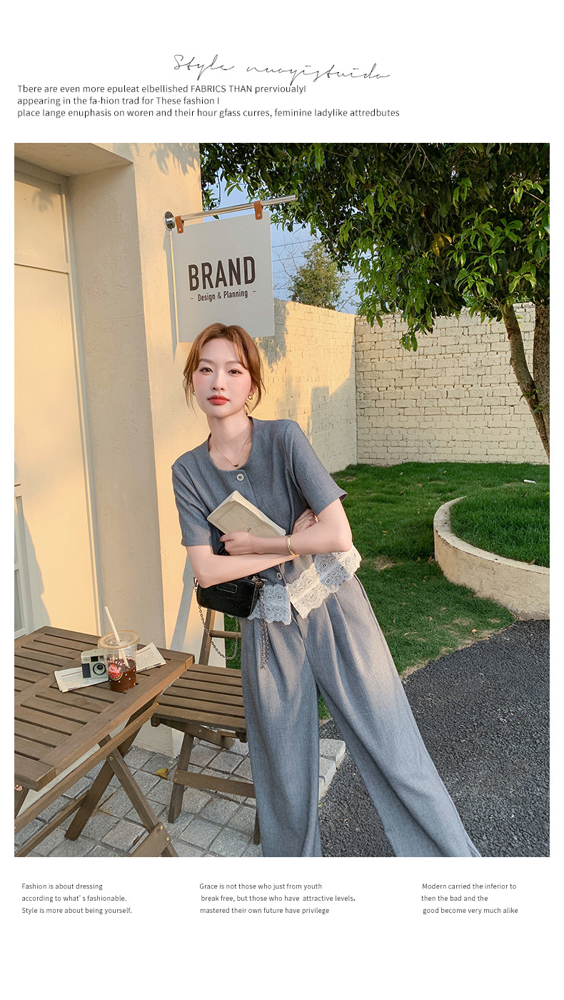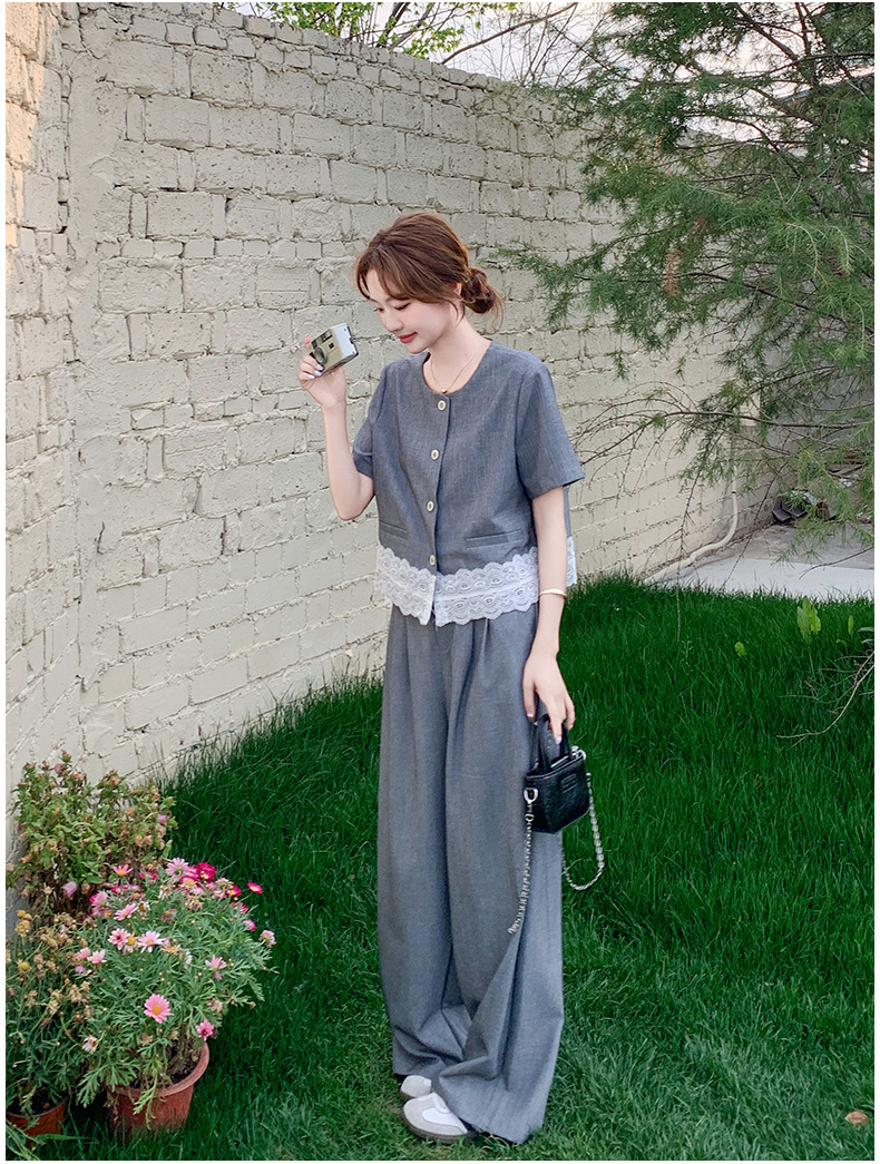 그레이 올드 머니 스타일 얇은 조끼 세트 여성 여름 새로운 캐주얼 우아한 슬리밍 스트레이트 바지 투피스 세트