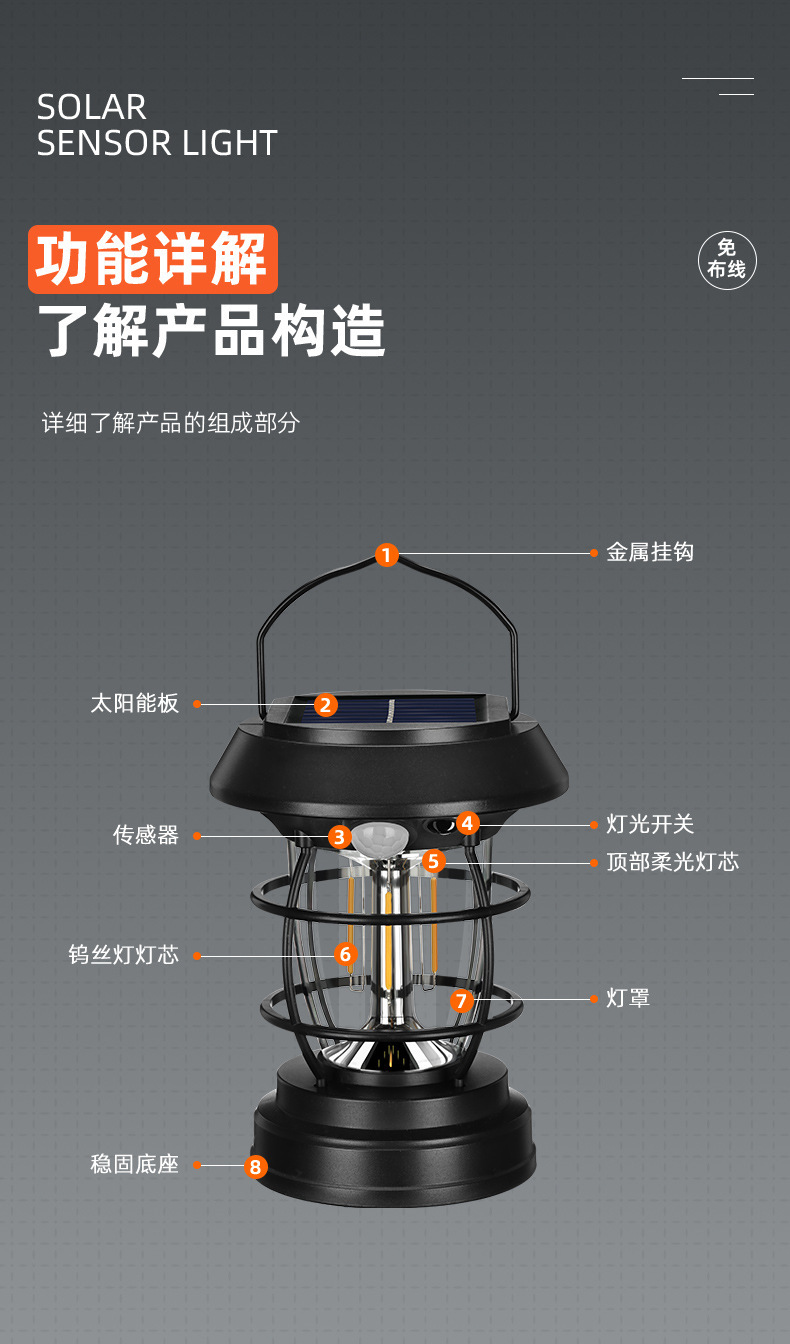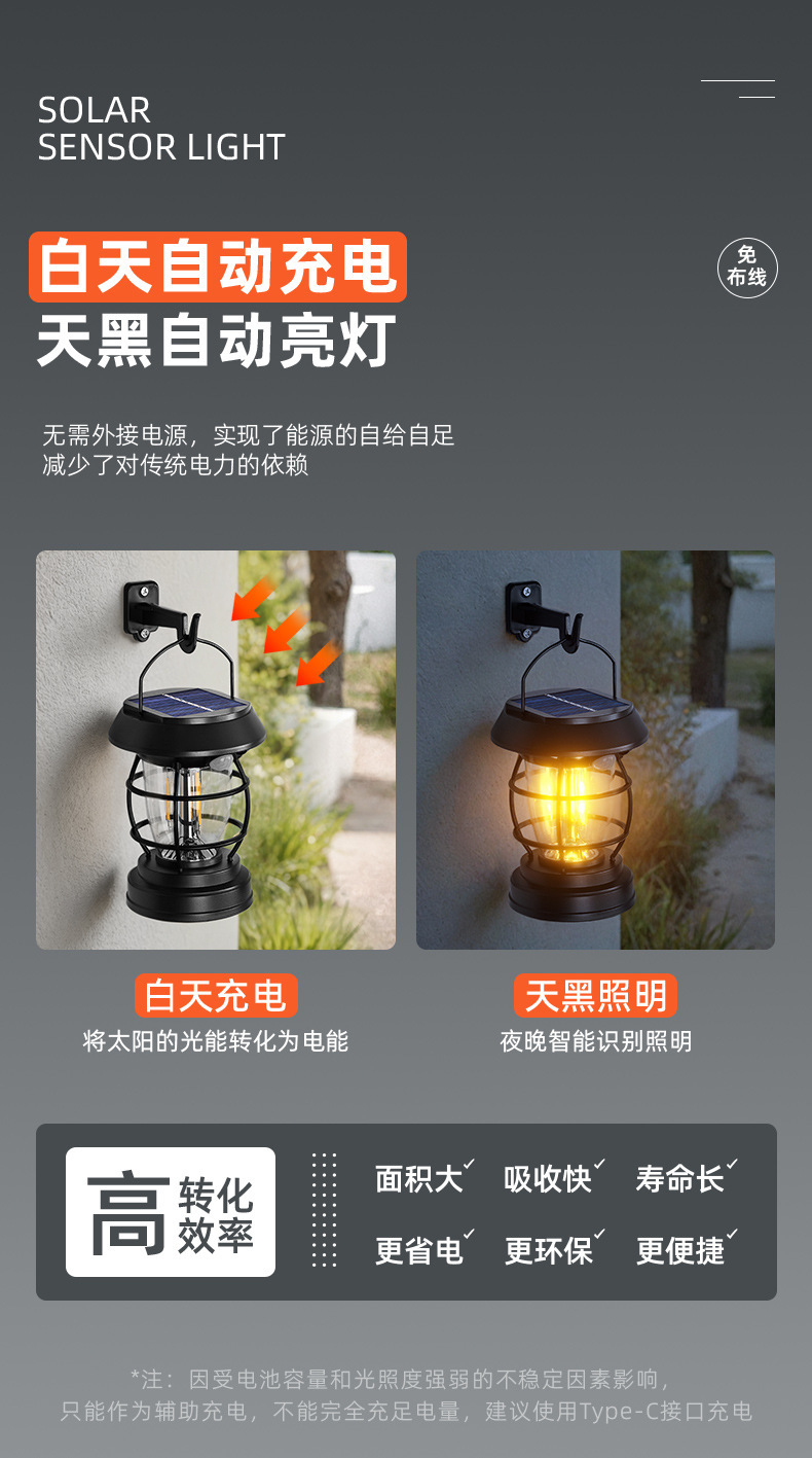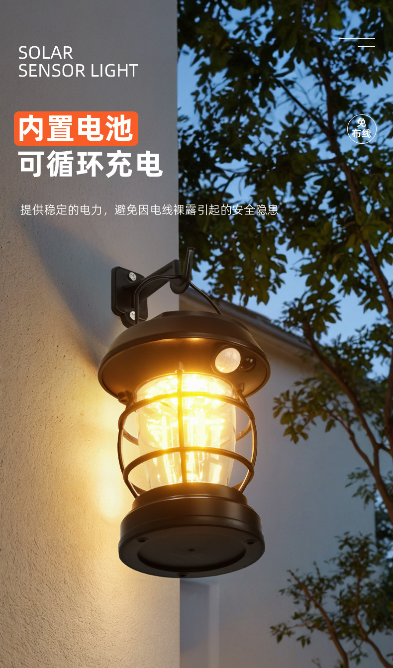 국경 간 태양열 말 랜턴 캠핑 램프 야외 안뜰 방수 센서 가로등 벽 램프 분위기 캠핑 램프 조명스토어 가기