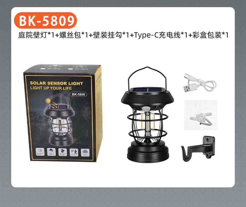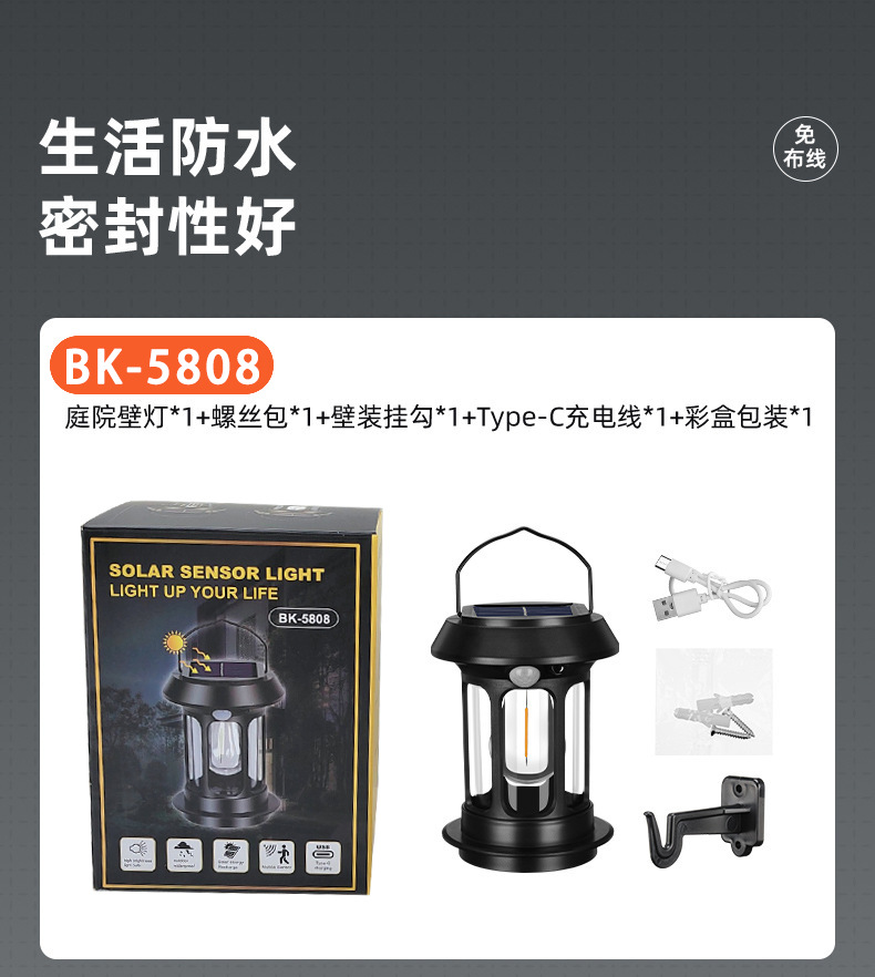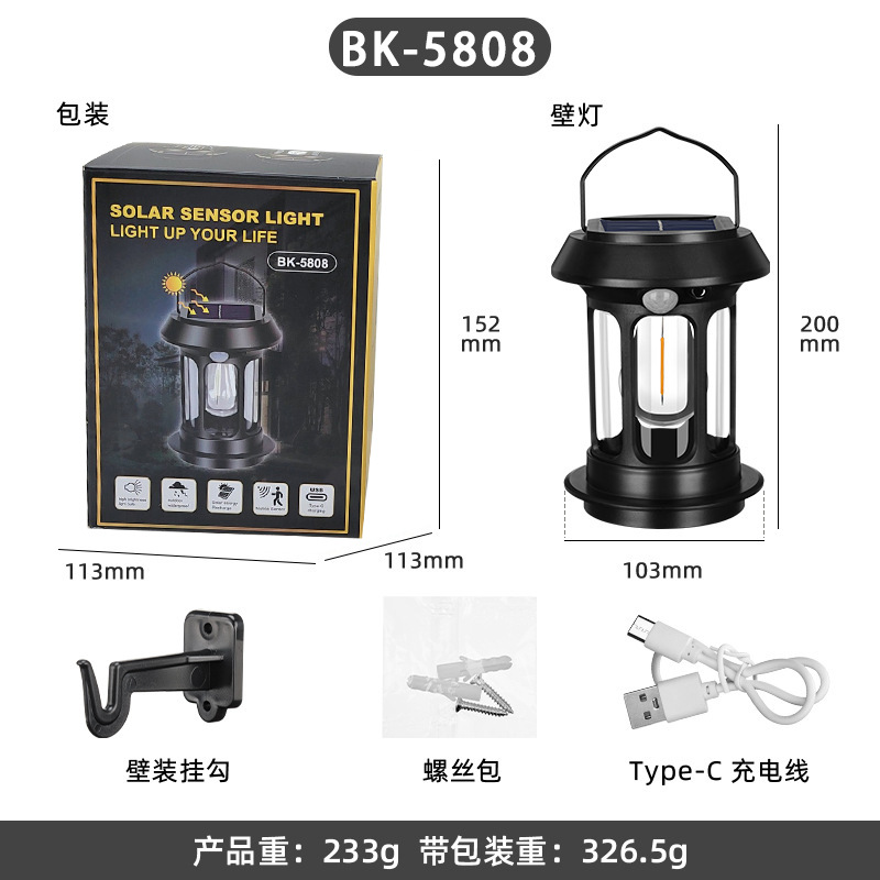 국경 간 태양열 말 랜턴 캠핑 램프 야외 안뜰 방수 센서 가로등 벽 램프 분위기 캠핑 램프 조명
