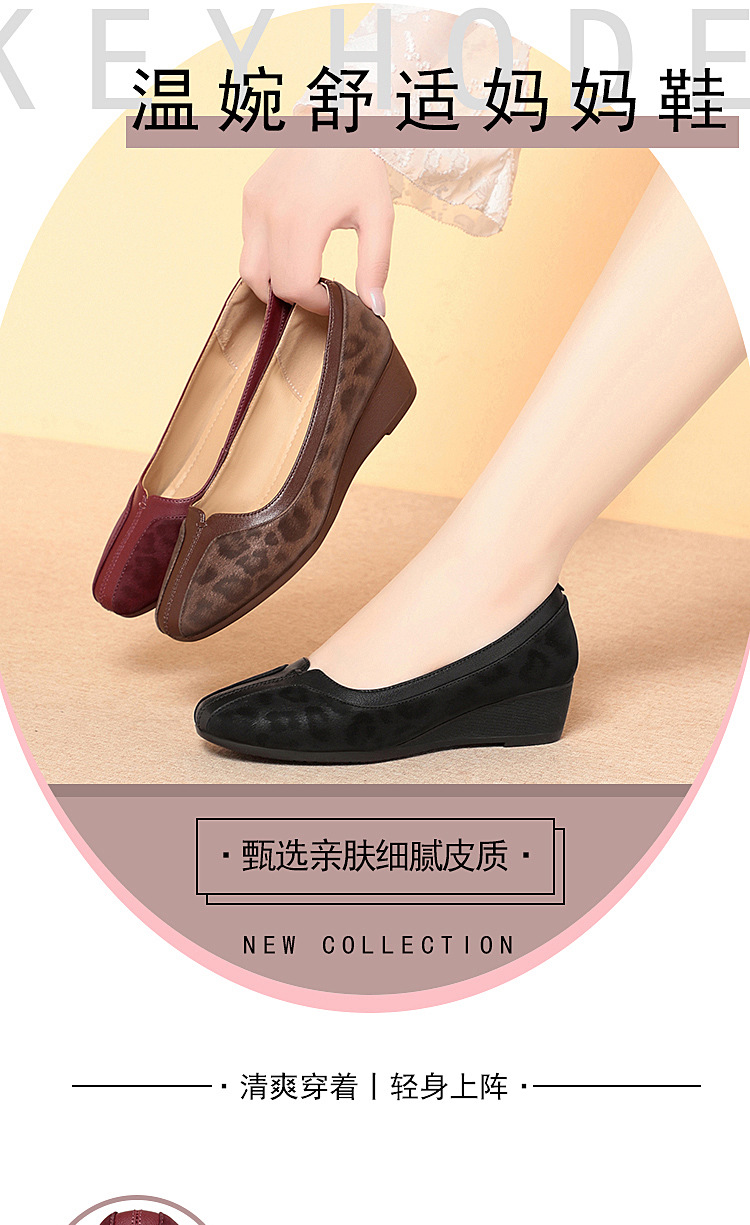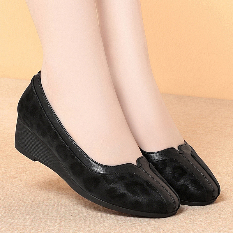 탑 레이어 소 가죽 다용도 싱글 레이어 신발 여성의 새로운 라운드 토 웨지 여성 신발 작업 신발 부드러운 가죽 피곤하지 않은 발 어머니 신발스토어 가기