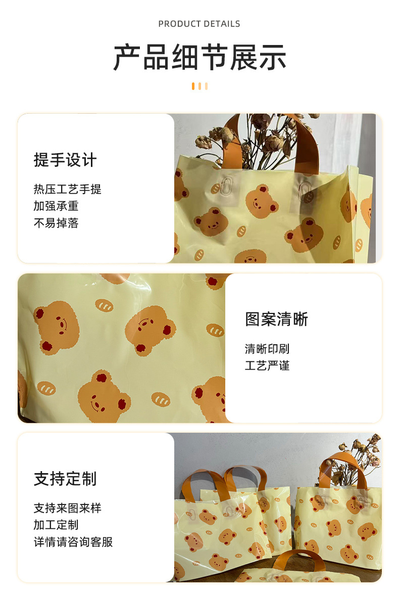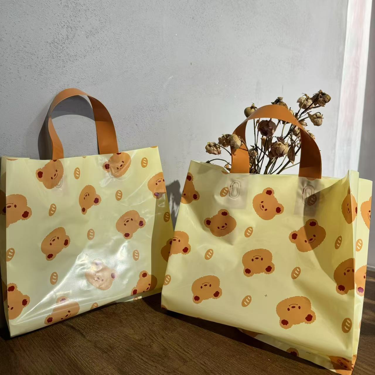 버터 곰 비닐 봉지 도매 만화 재고 두꺼운 토트 백 하이 엔드 의류 매장 패션 선물 쇼핑백스토어 가기
