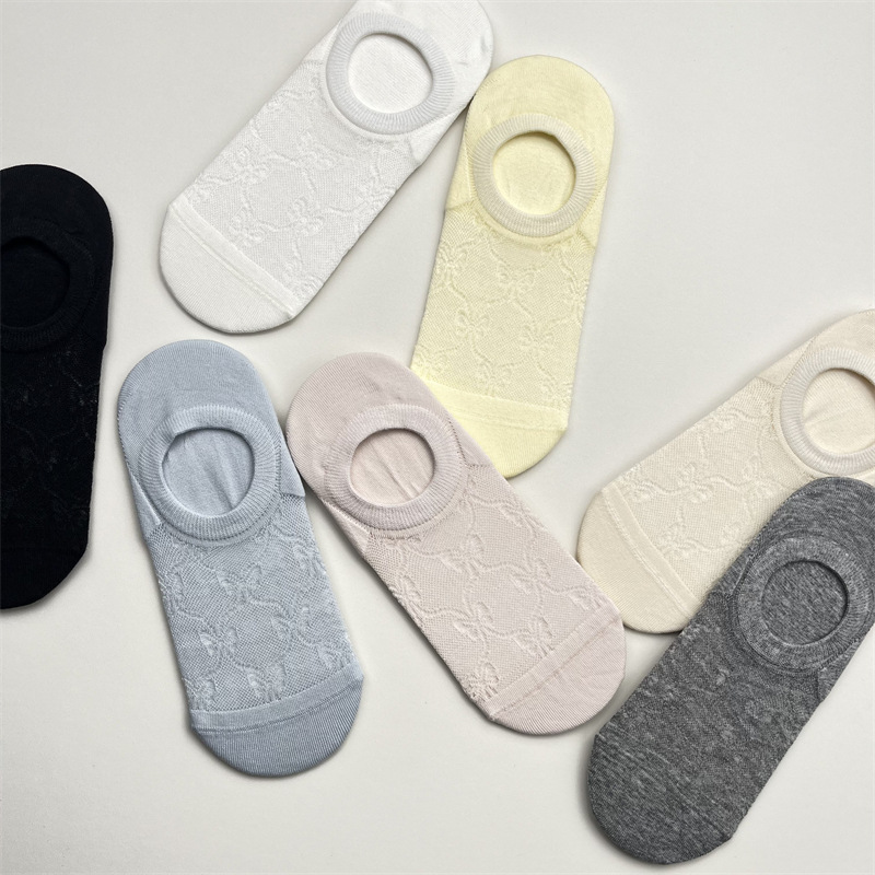 봄 여름 보우 중공 메쉬 미끄럼 방지 보이지 않는 양말 솔리드 컬러 심플하고 다재다능한 여성용 힐리스 보트 양말 뼈없는 양말스토어 가기