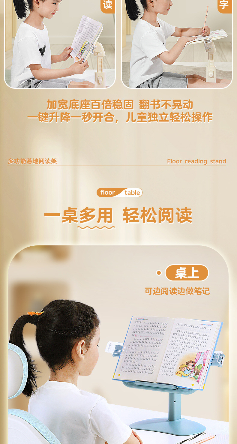 책장 바닥 독서대 어린이 독서 조절식 리프팅 회전 책장 침대 옆 책장 초등학생 데스크탑 선반