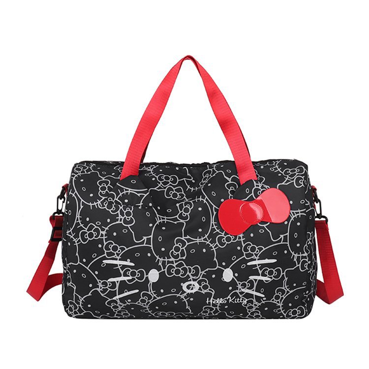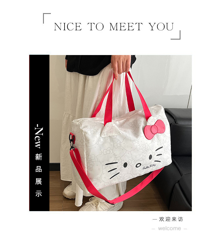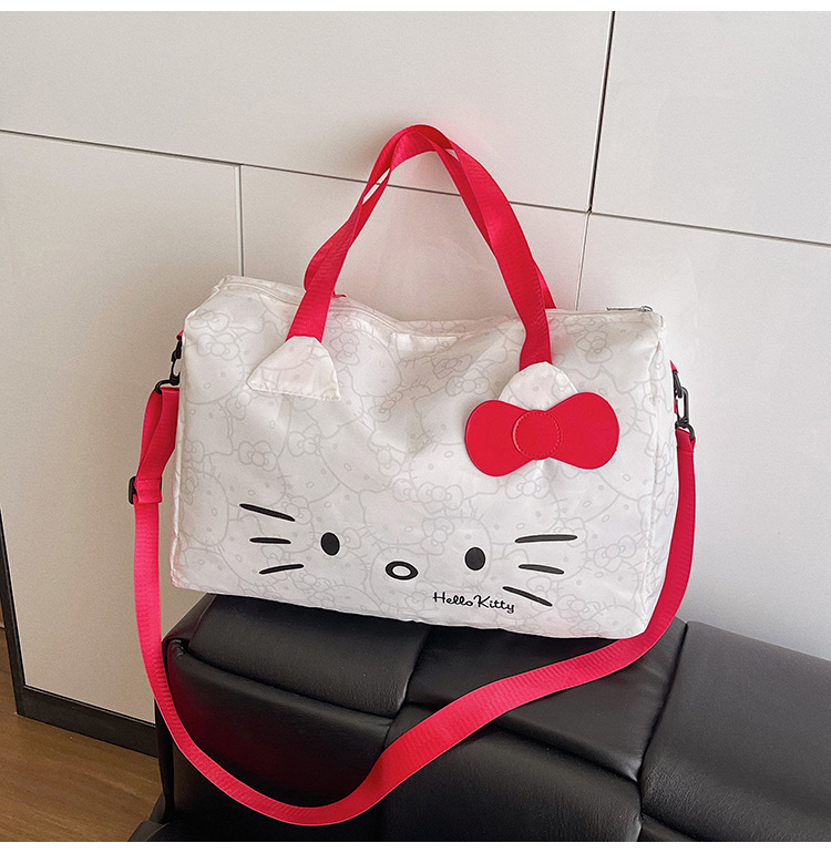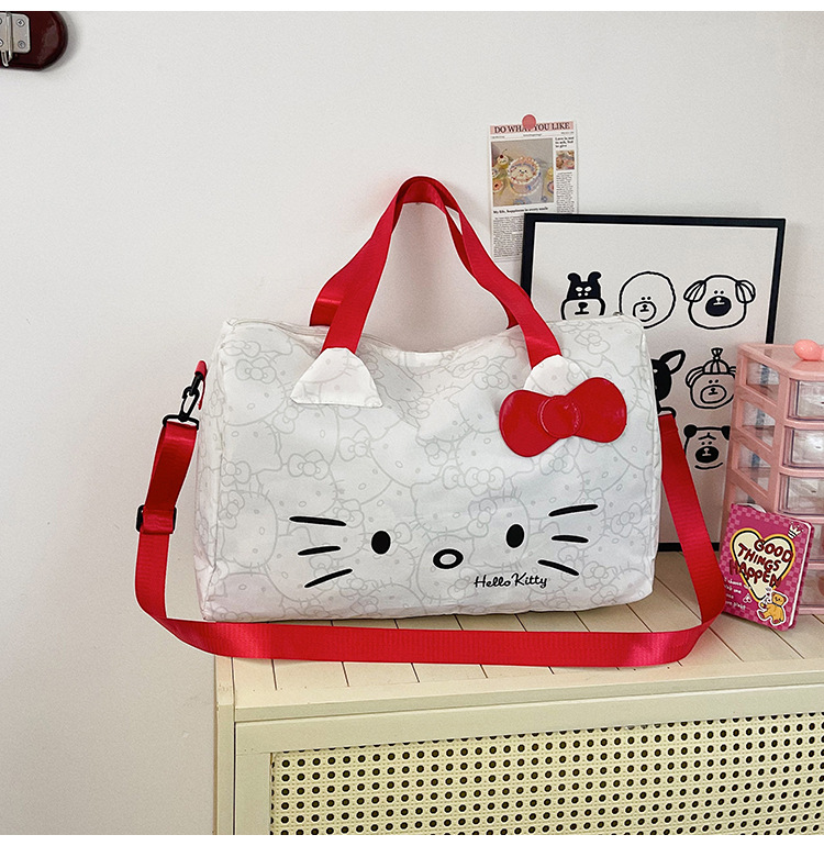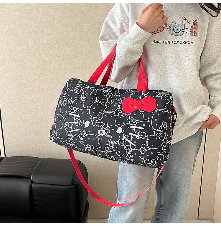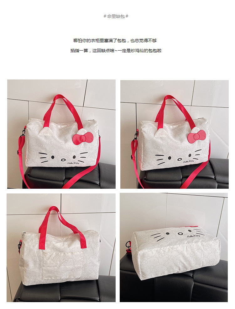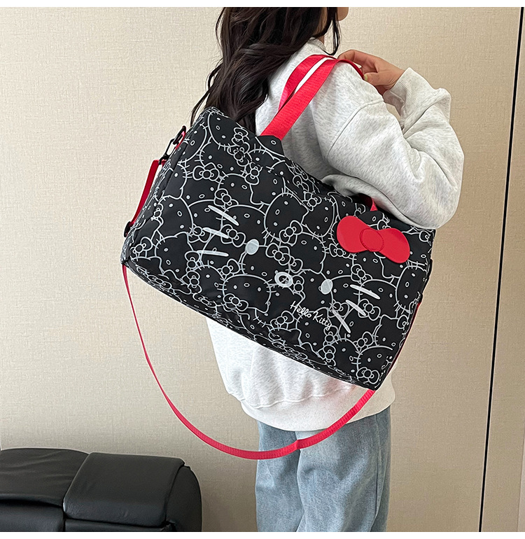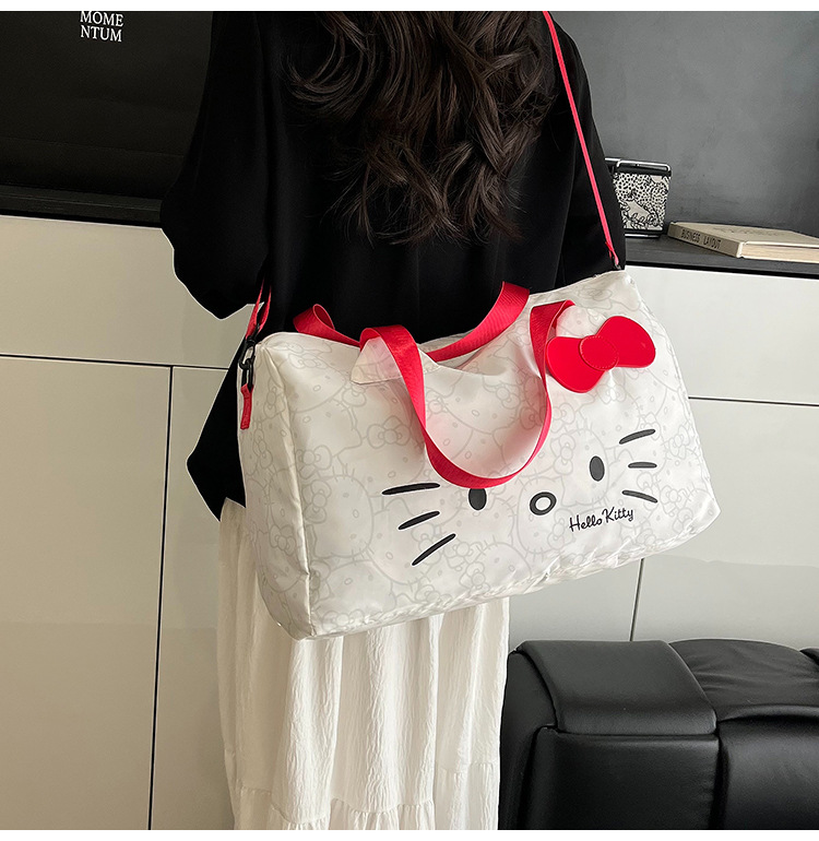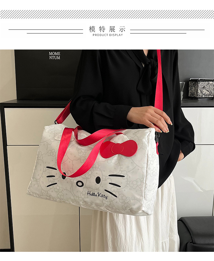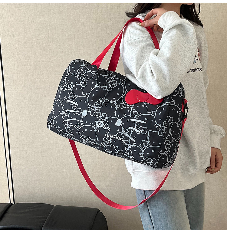 국경 간 2025 새로운 스타일 간단한 대용량 KT 고양이 헬로 키티 휴대용 어깨 토트 백 캐주얼 단거리 여행 가방스토어 가기