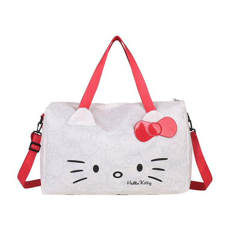 국경 간 2025 새로운 스타일 간단한 대용량 KT 고양이 헬로 키티 휴대용 어깨 토트 백 캐주얼 단거리 여행 가방