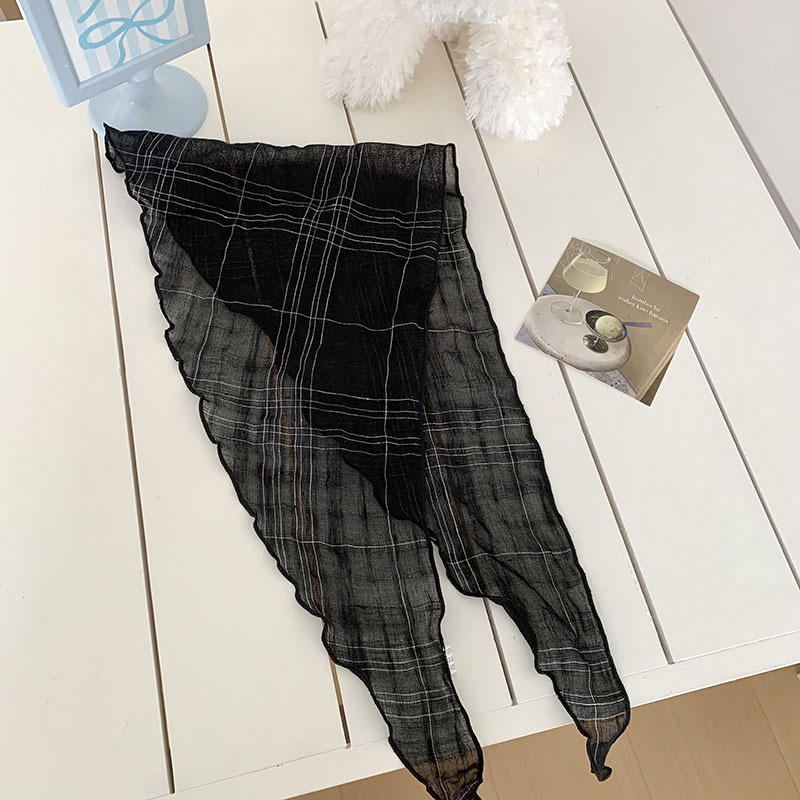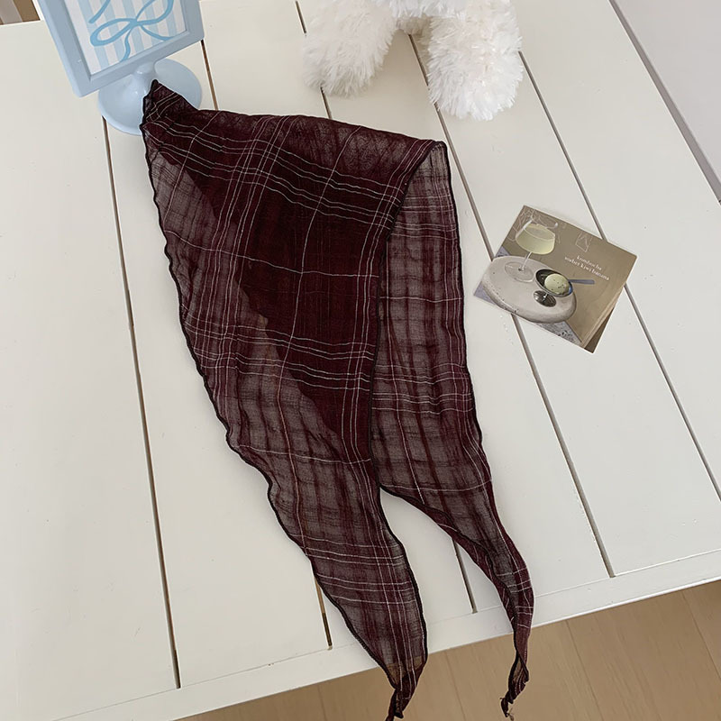 삼각형 스카프 여성의 예술적 통기성 장식 스카프 올 매치 체크 헤드 스카프 여름 여성의 목가적 인 헤어 액세서리 헤어 벨트