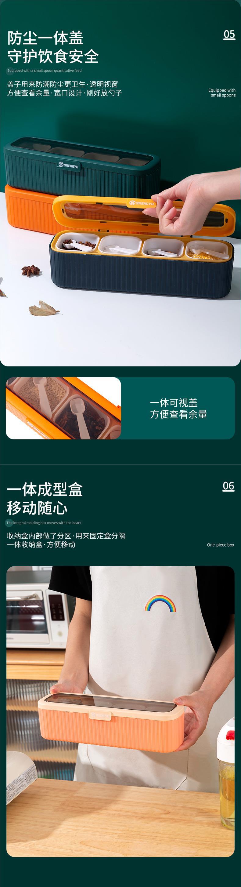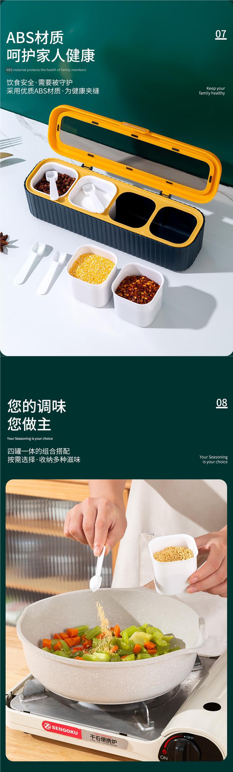주방 조미료 상자, 가정용 일체형 다중 그리드 조미료 상자, 조미료 상자, 조미료 항아리, 방습 보관 상자, 소금 항아리, 가벼운 럭셔리 없음스토어 가기
