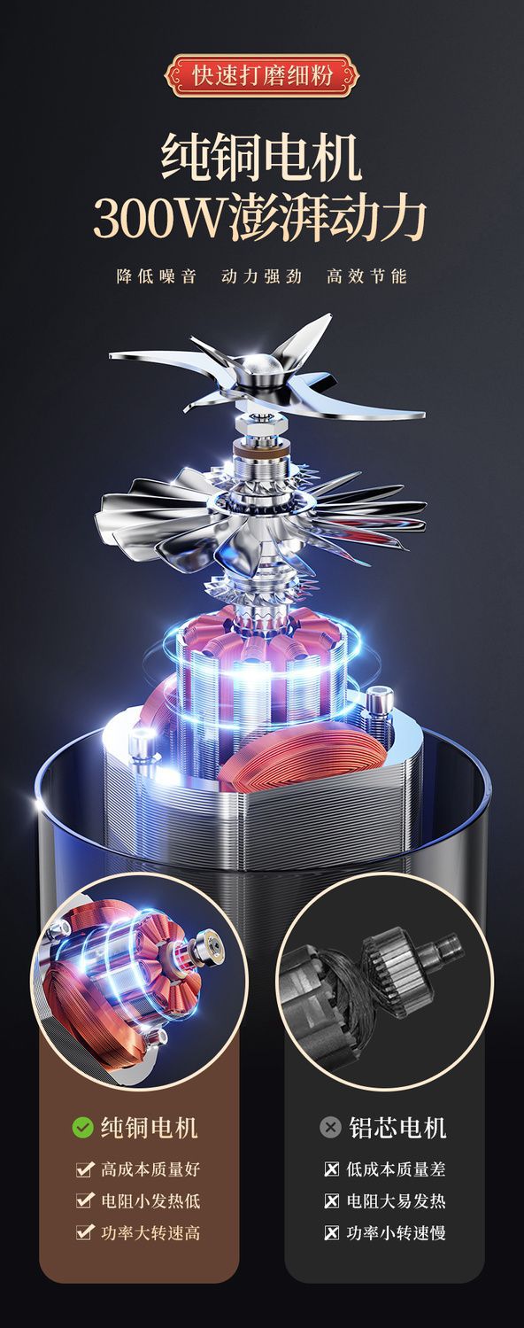 • 304 식품 등급 스테인리스 스틸 [고출력 + 6중 스테인리스 스틸 블레이드]