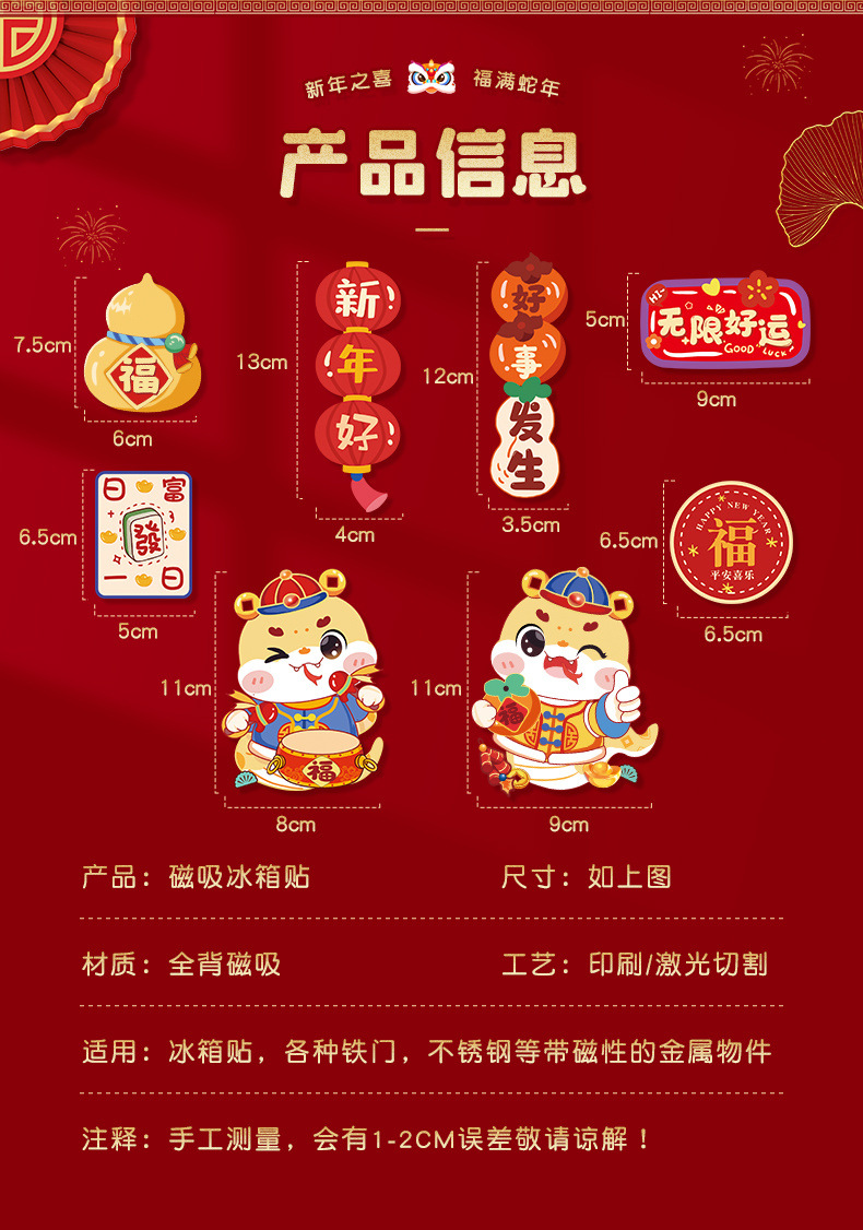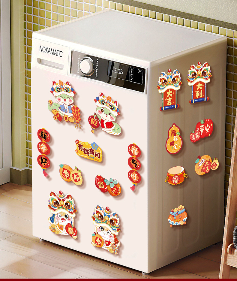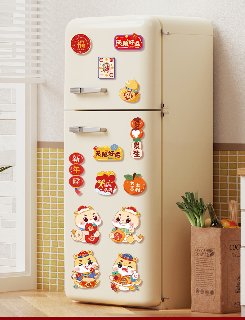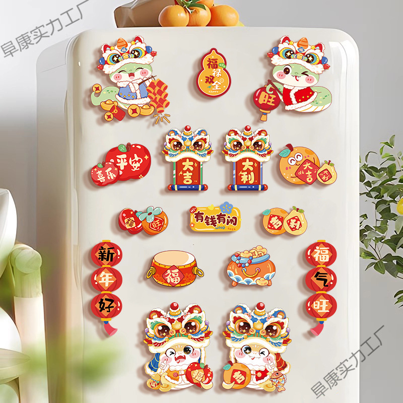 2025 새로운 뱀의 해 크리 에이 티브 자기 커플 냉장고 자석 새해 및 봄 축제 축복 문 스티커 레이아웃 장식