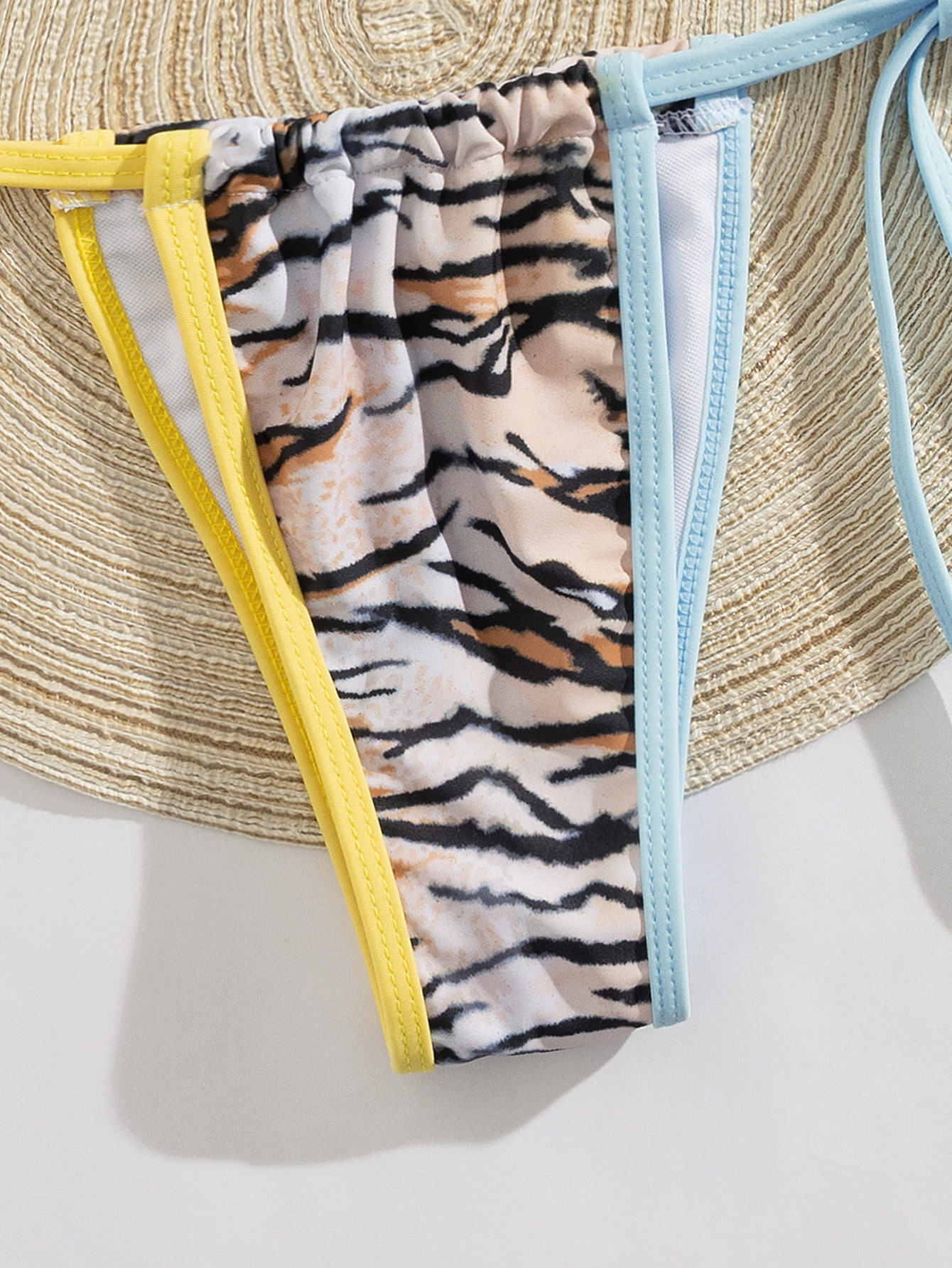 클리어아웃 여성용 섹시하고 아방가르드한 레오파드 프린트 홀터넥 수영복 비키니, 대비색 테두리, 레이스업 디자인, 슬림핏, 다용도스토어 가기