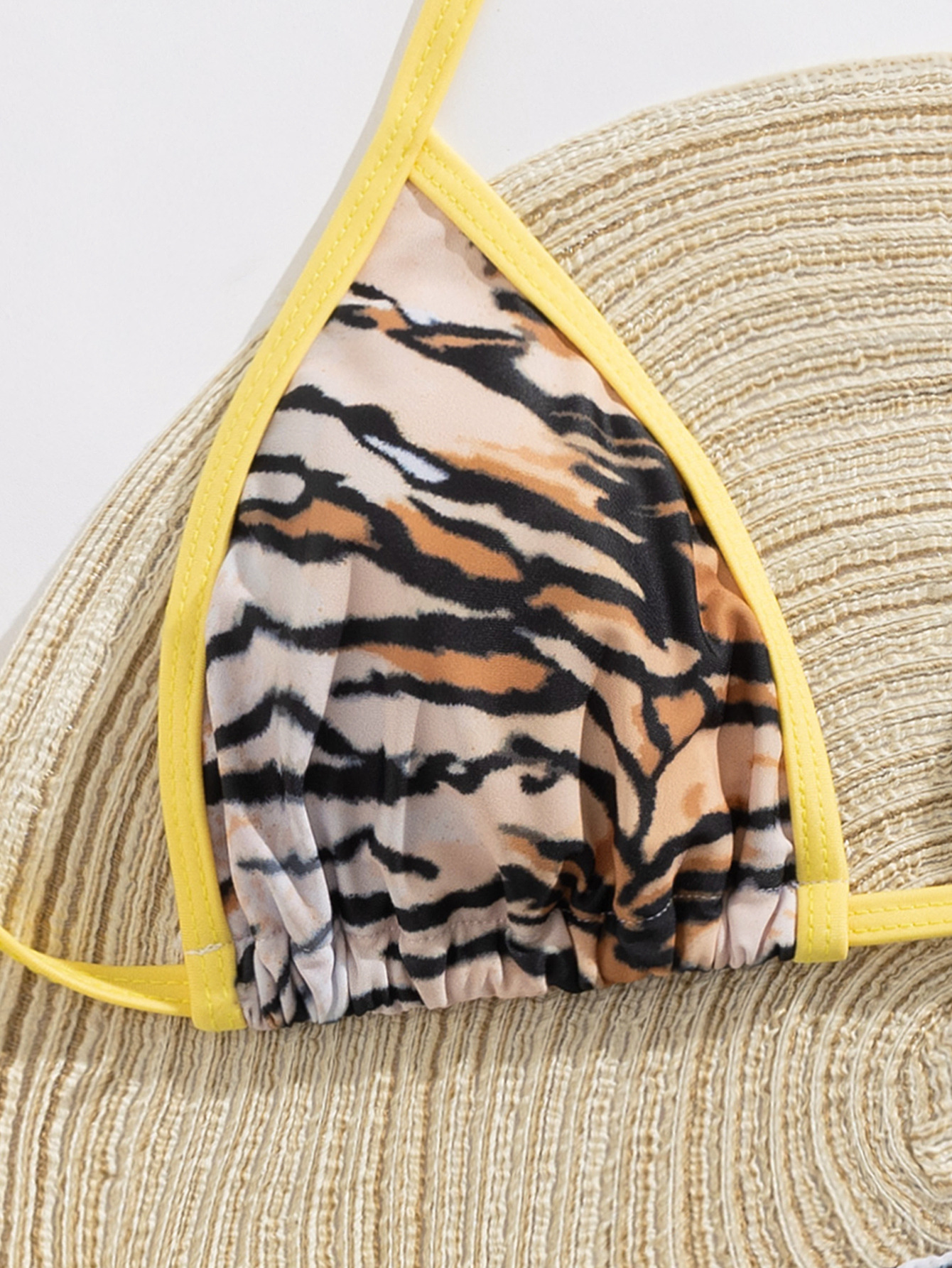 클리어아웃 여성용 섹시하고 아방가르드한 레오파드 프린트 홀터넥 수영복 비키니, 대비색 테두리, 레이스업 디자인, 슬림핏, 다용도