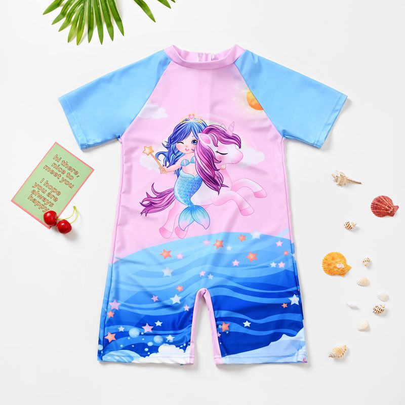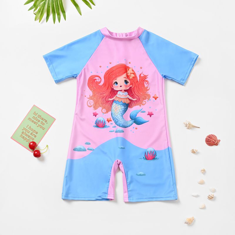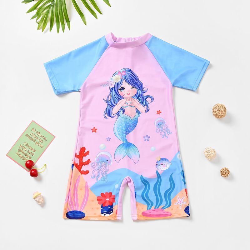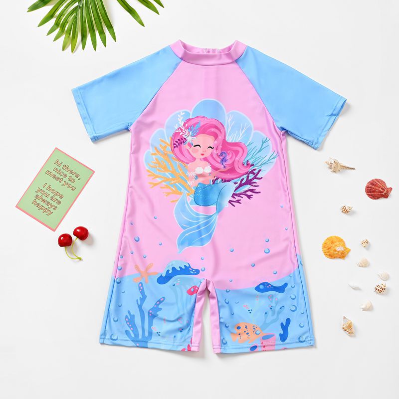 아동용 수영복, 남아용 원피스 수영복, 달콤한 어린이, 귀여운 만화 소녀, 자외선 차단, 중대형 아동용 수영복