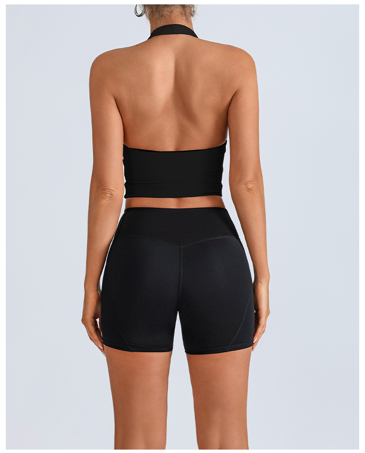 유럽과 미국의 국경 간 스포츠 조끼 요가 의류 여성 목 V-목 수집 피트니스 뷰티 백 빠른 건조 훈련 탑