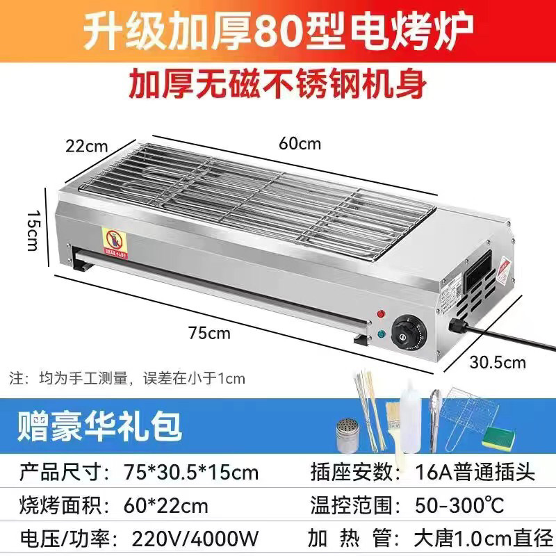 상업용 무연 전기 바베큐 그릴 실내 무연 바베큐 그릴 생선 글루텐 닭 날개 양고기 꼬치 기계 굴 야시장