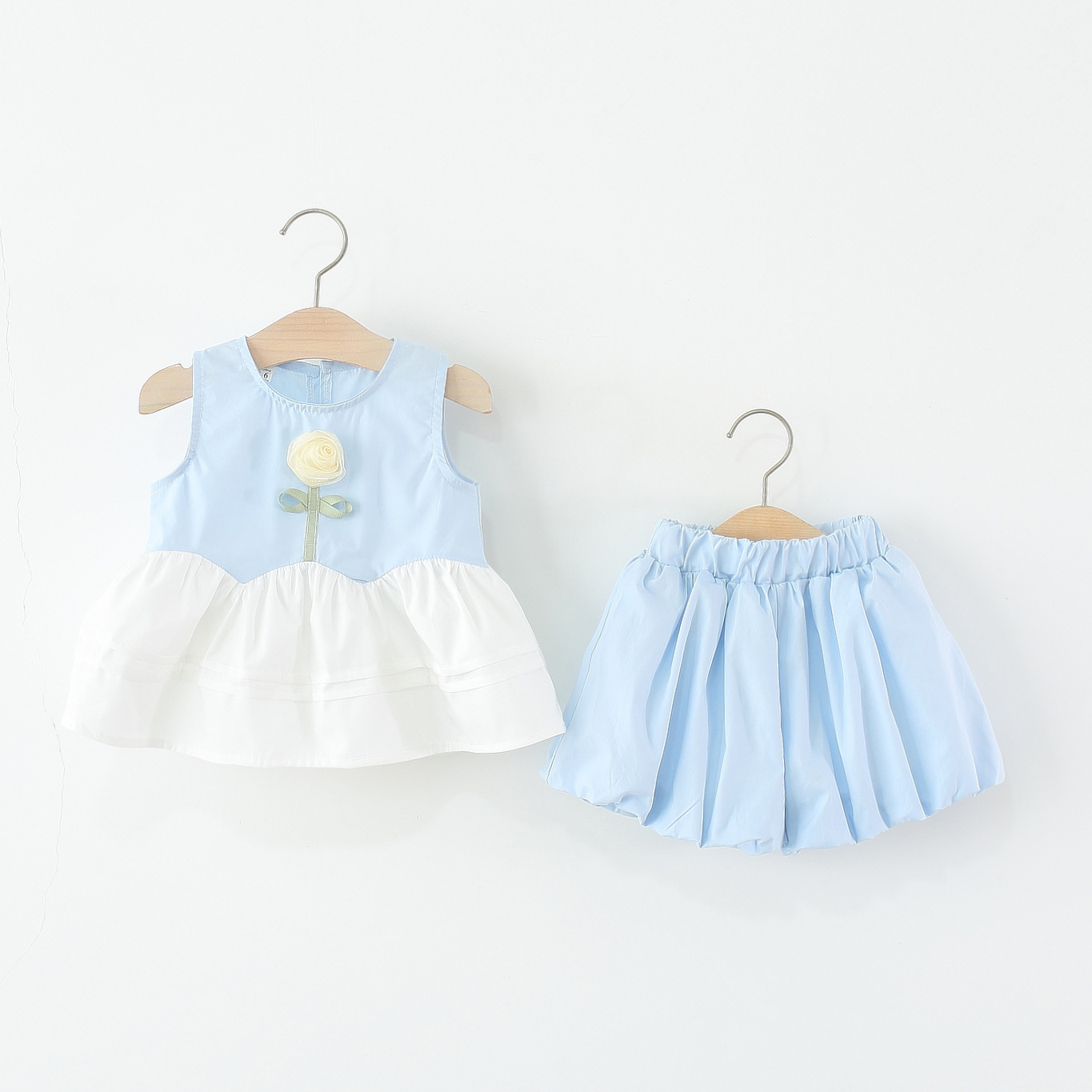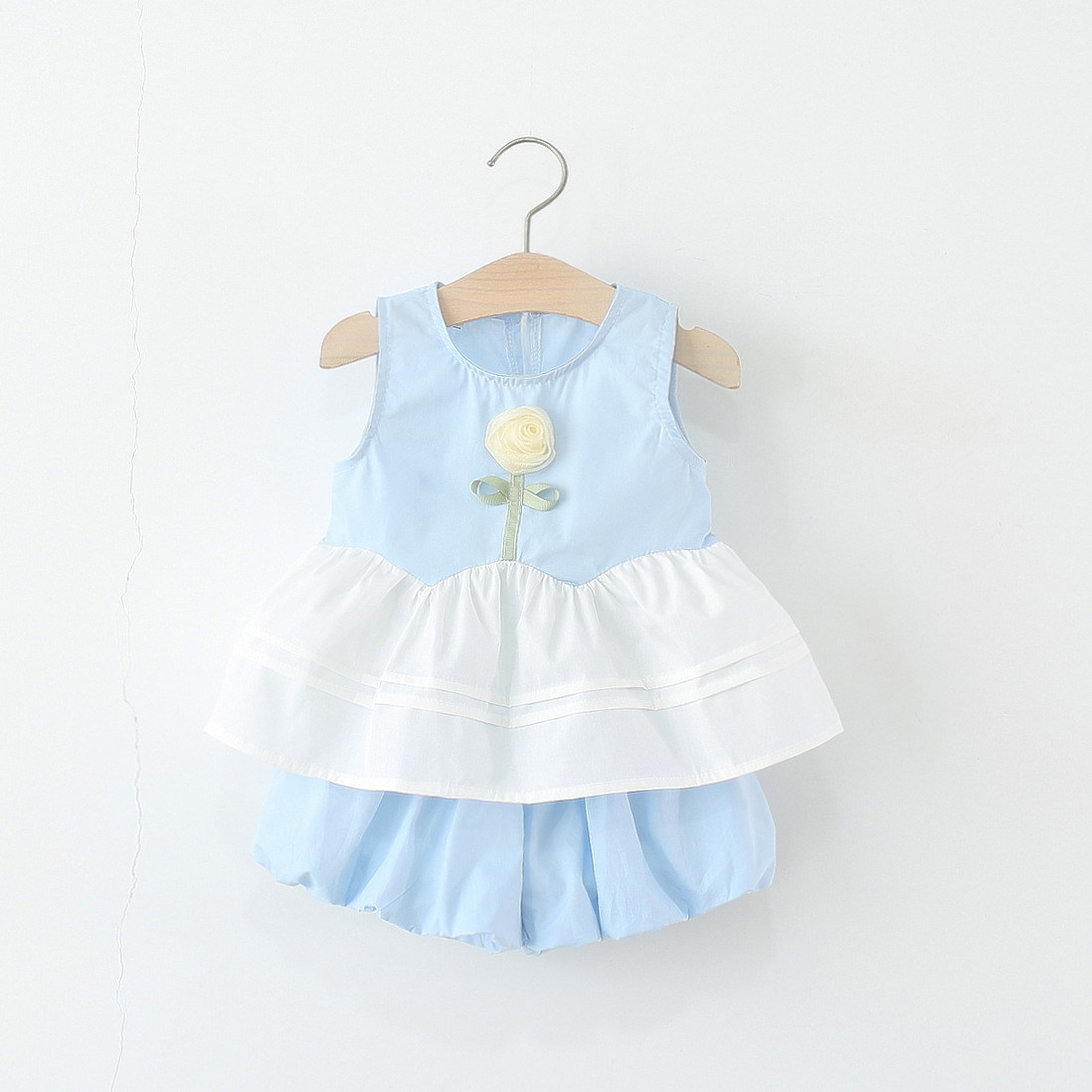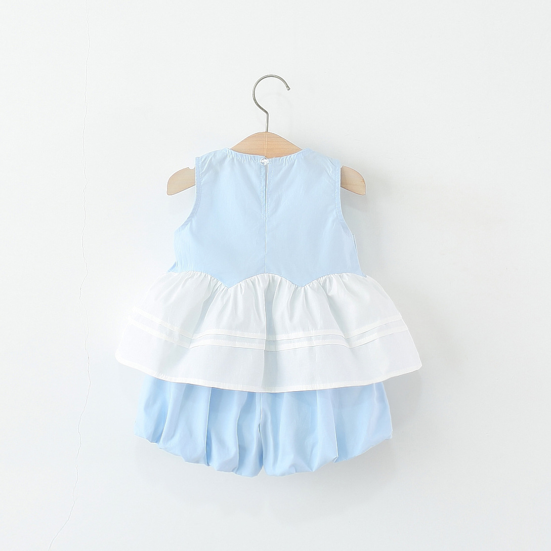아동복 2025 새로운 소녀 세트 여름 아기 소녀 솔리드 컬러 꽃 조끼 꽃 버드 반바지 투피스 세트