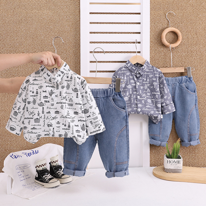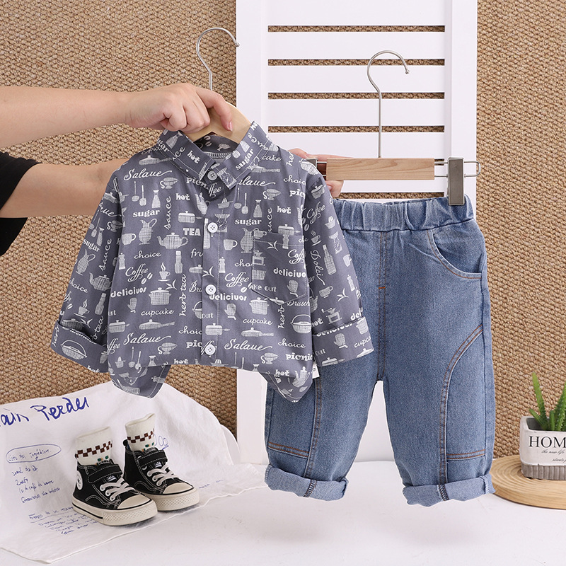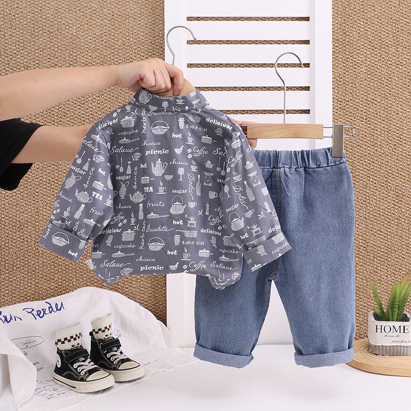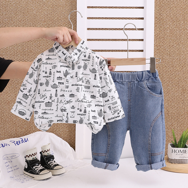 봄과 가을 어린이 아기 주전자 셔츠 긴팔 투피스 세트 유행 소년 간단한 긴팔 투피스 세트 공장 직접 판매