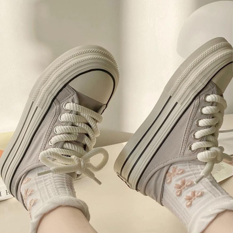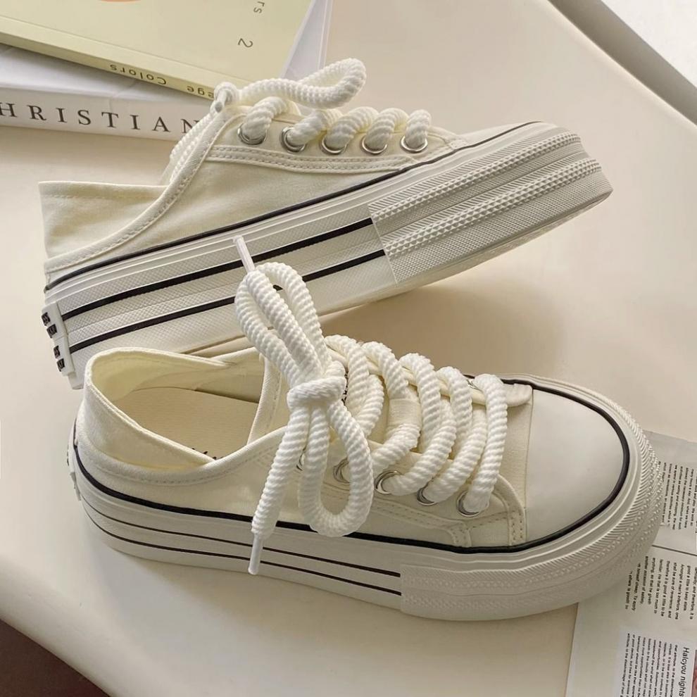 여성을위한 크림 화이트 두꺼운 밑창 투웨어 캔버스 신발 2025 새로운 여름 여성 신발 통기성 하프 슬립 온 화이트 신발