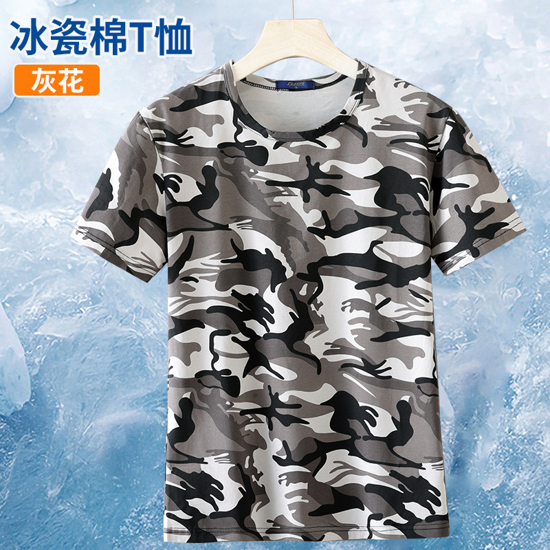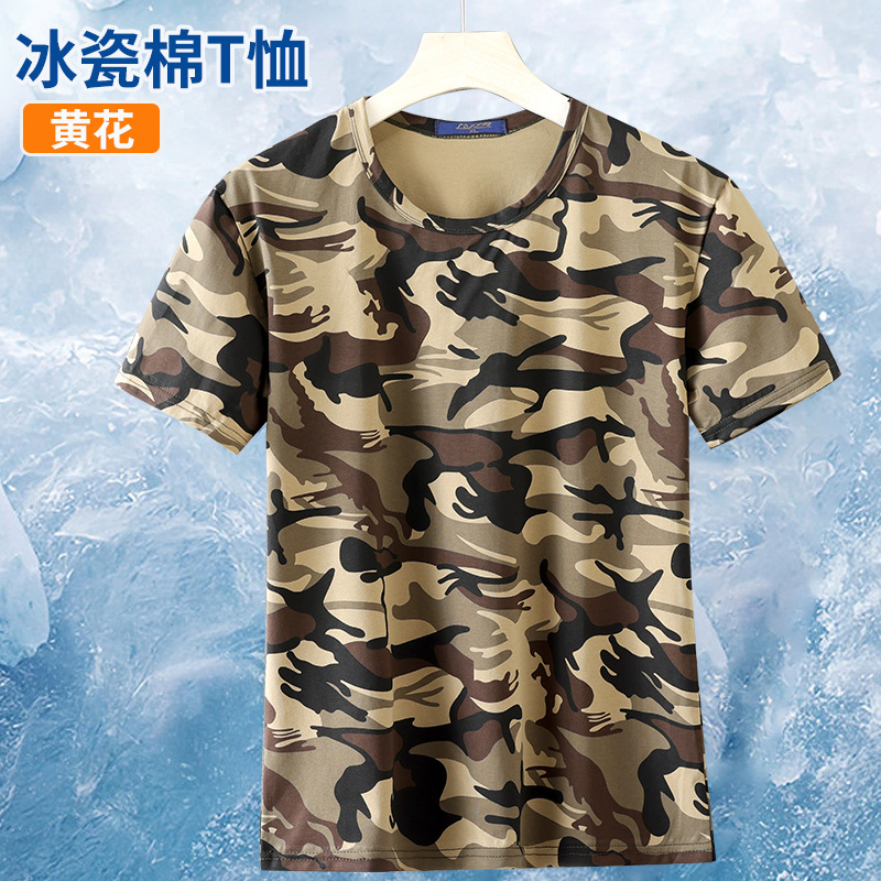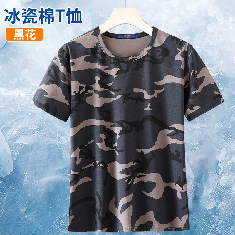여름 남성용 티셔츠 반팔 순면 고탄력 위장 전술 조끼 통기성 라운드넥 아이스 코튼 티셔츠 속건스토어 가기