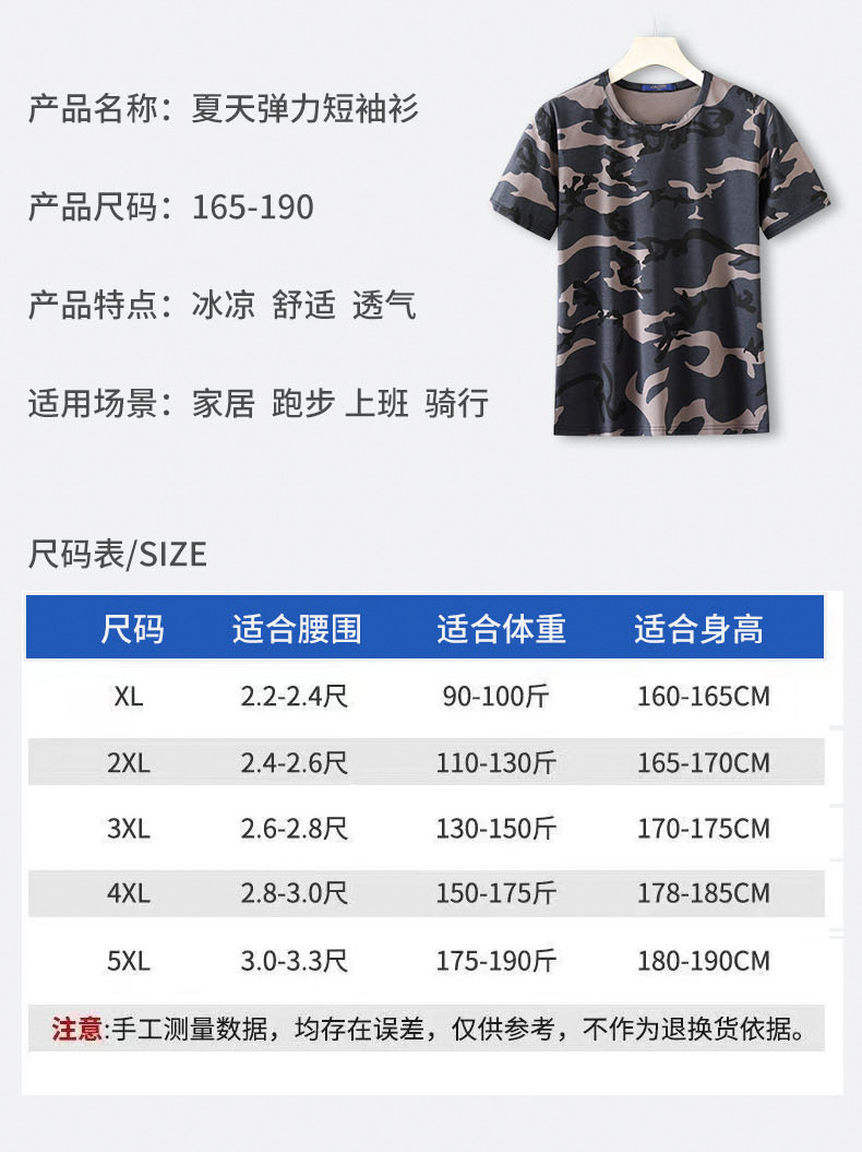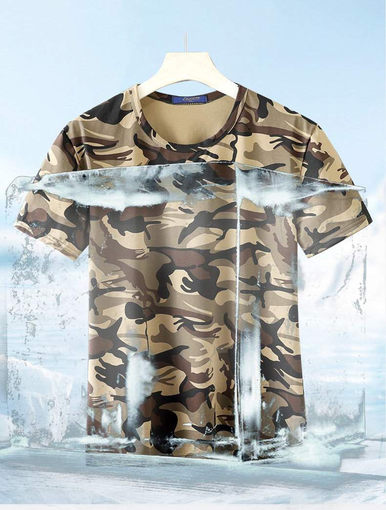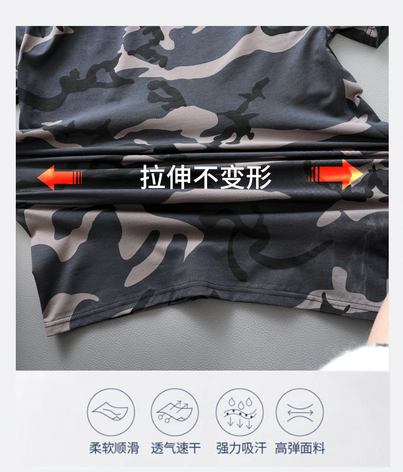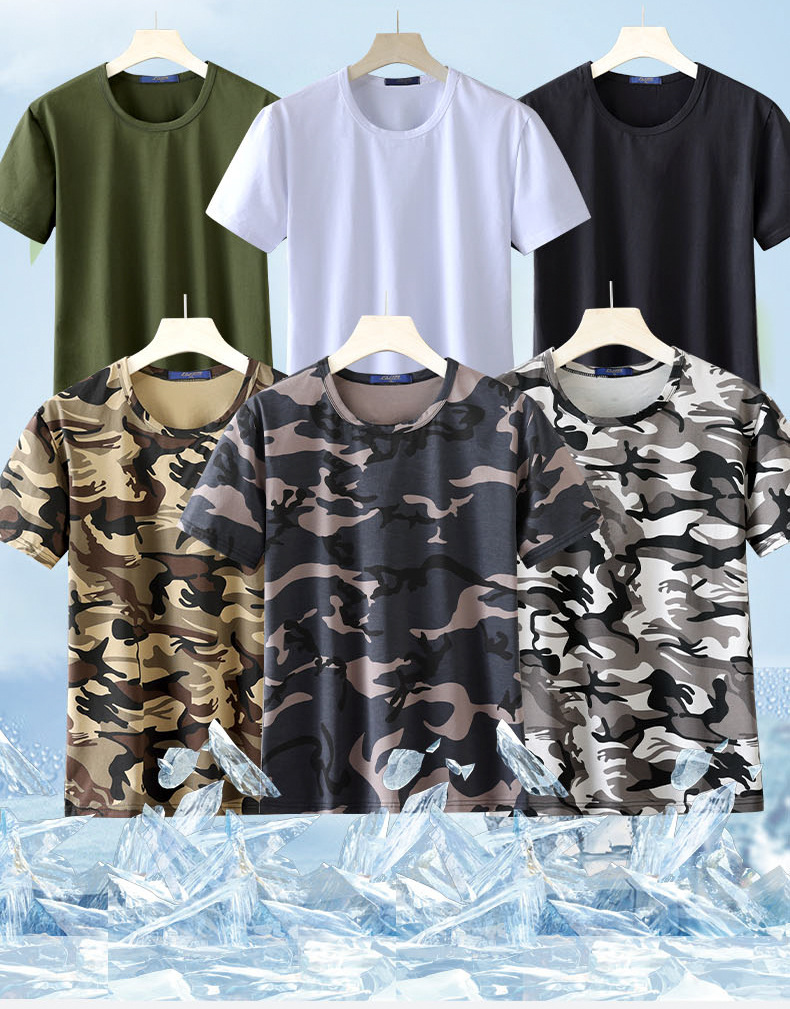 여름 남성용 티셔츠 반팔 순면 고탄력 위장 전술 조끼 통기성 라운드넥 아이스 코튼 티셔츠 속건
