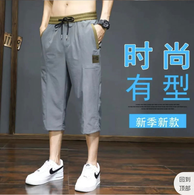 Yunfeihui 남성 바지 여름 얇은 얼음 실크 크롭 바지 남성 느슨한 스트레이트 바지 스포츠 통기성 속건 반바지스토어 가기